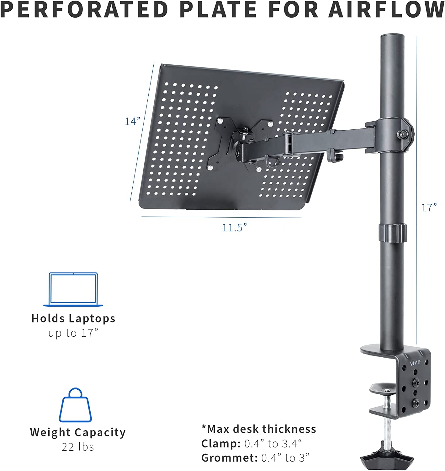 • We've Got You Covered - This sturdy steel and aluminum laptop mount is backed with a 3 Year Manufacturer Warranty and friendly tech support to help with any questions or concerns.