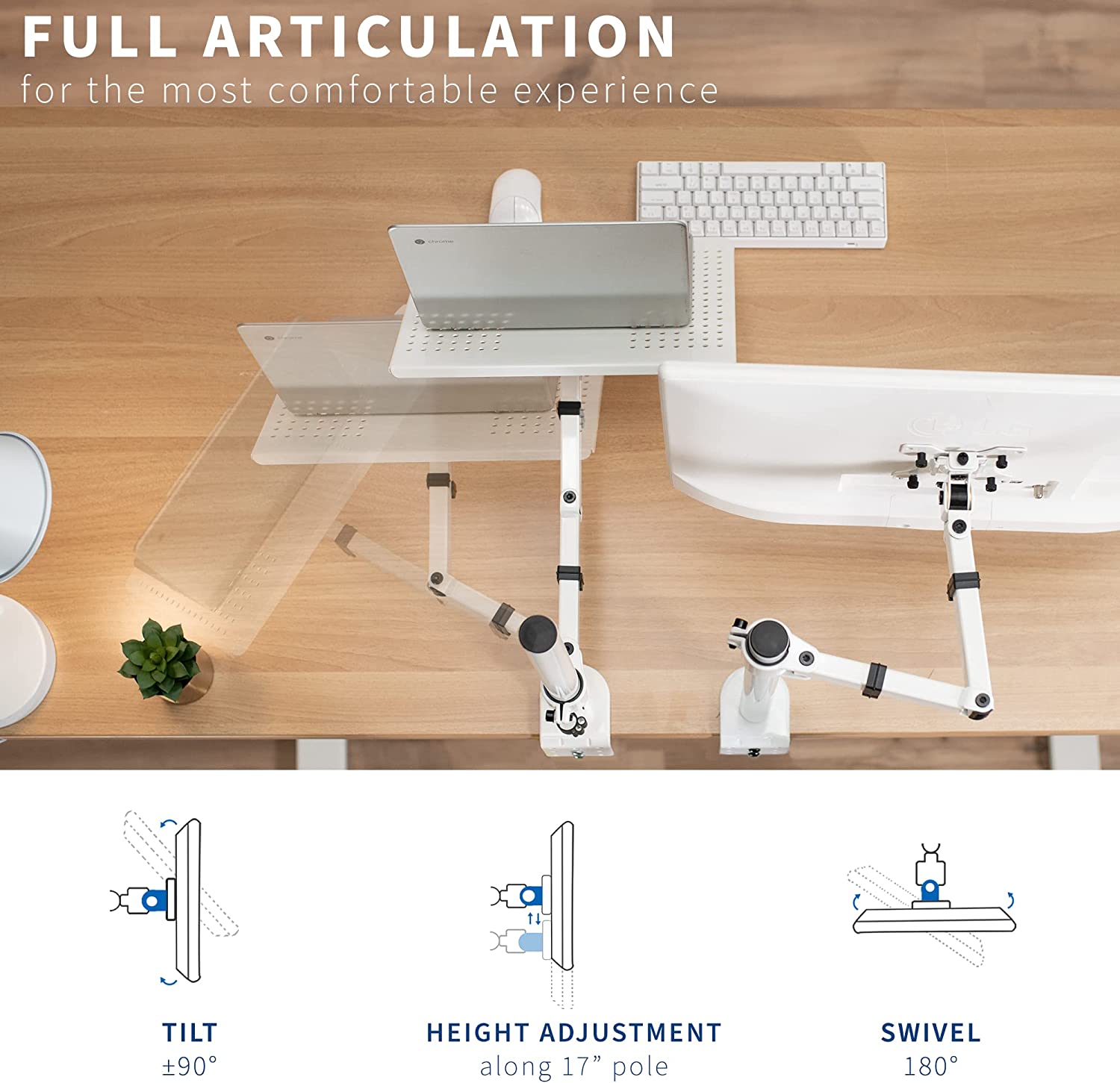 • Flexible Articulation - Adjustable arm offers +90° to -90° tilt, 180° swivel, 360° rotation, and height adjustment along the center pole. Position your tray where it's most comfortable for an ergonomic setup.