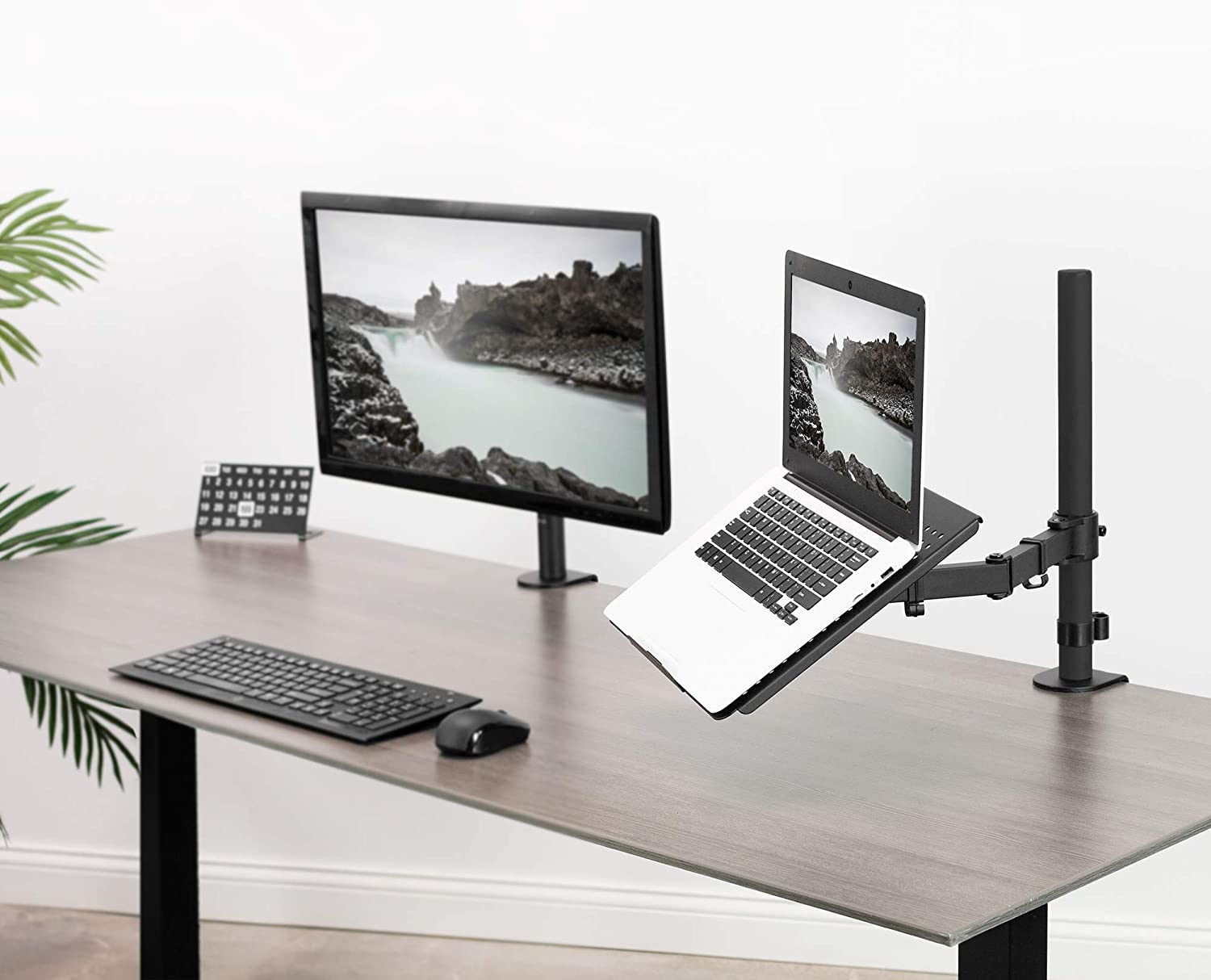 VIVO Single Laptop Notebook Desk Mount Stand, Fully Adjustable Extension with C-clamp, Fits up to 17 inch Laptops, Black, STAND-V001L