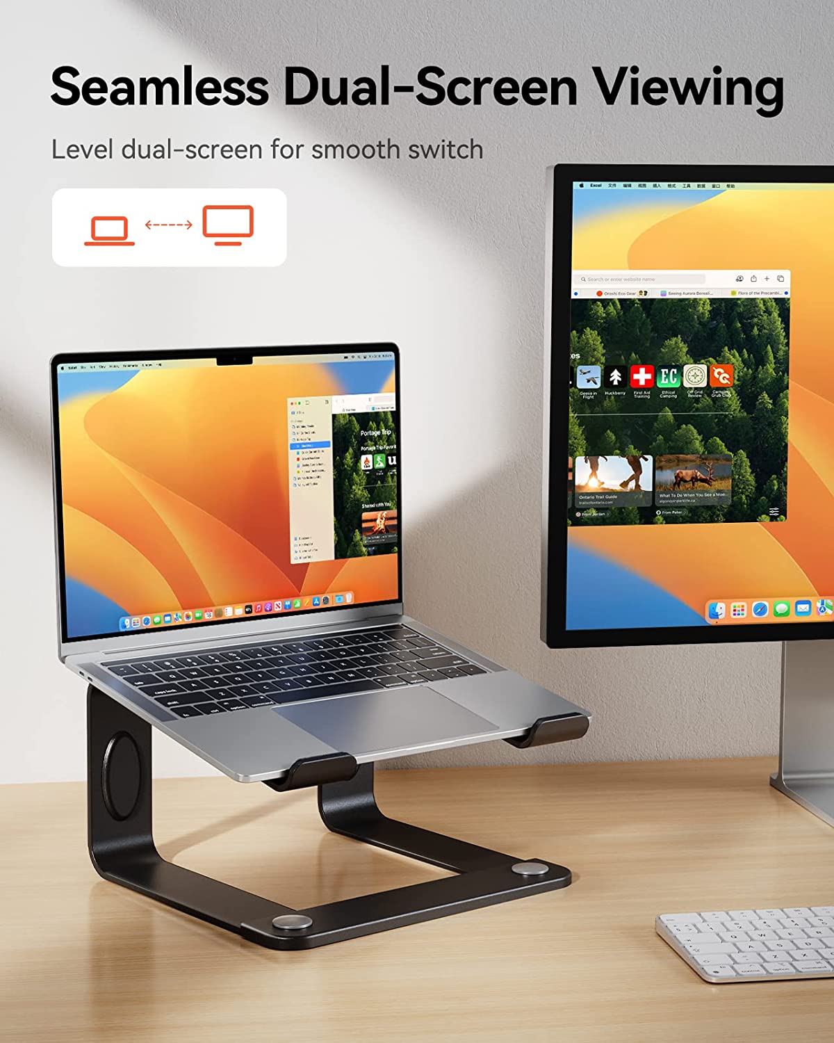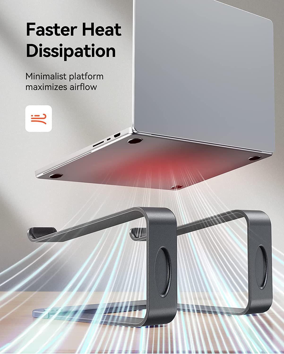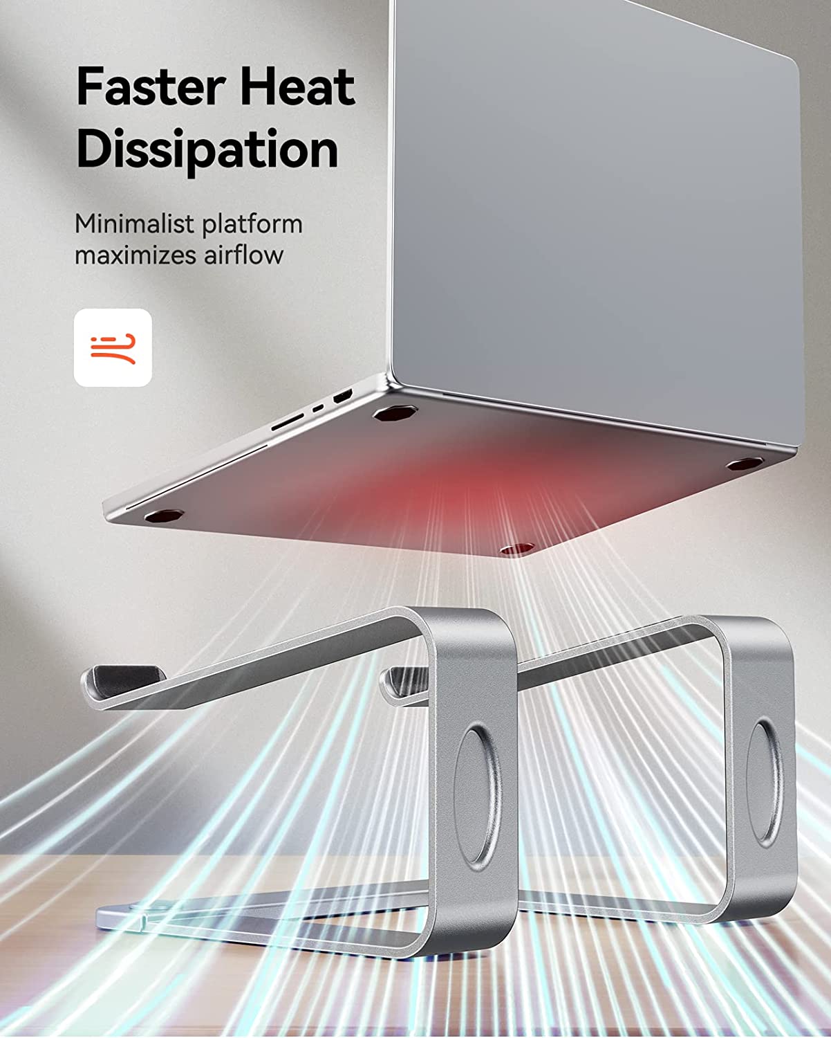• Heat Dissipation - Keeping your laptop cool is the key to prolonging its service life. Using a laptop stand for desk will raise your laptop from a flat surface, which allows natural air to continuously cool your laptop and prevent it from overheating.