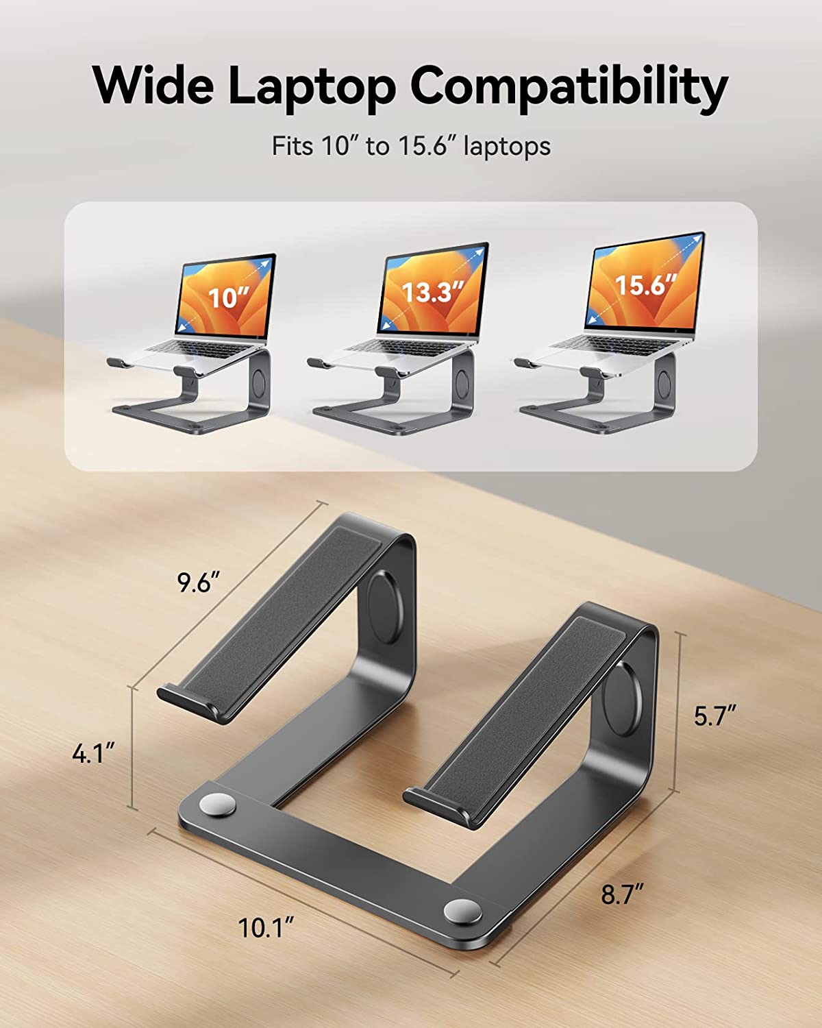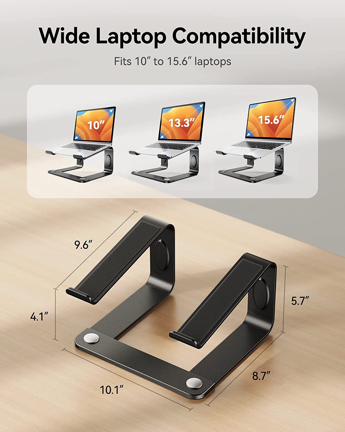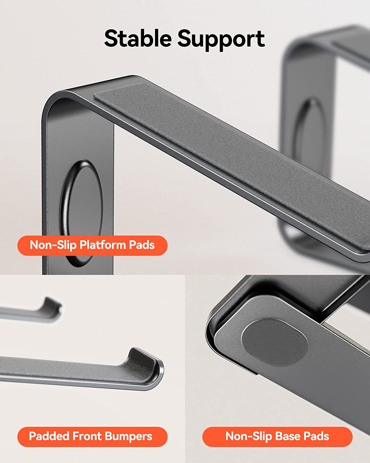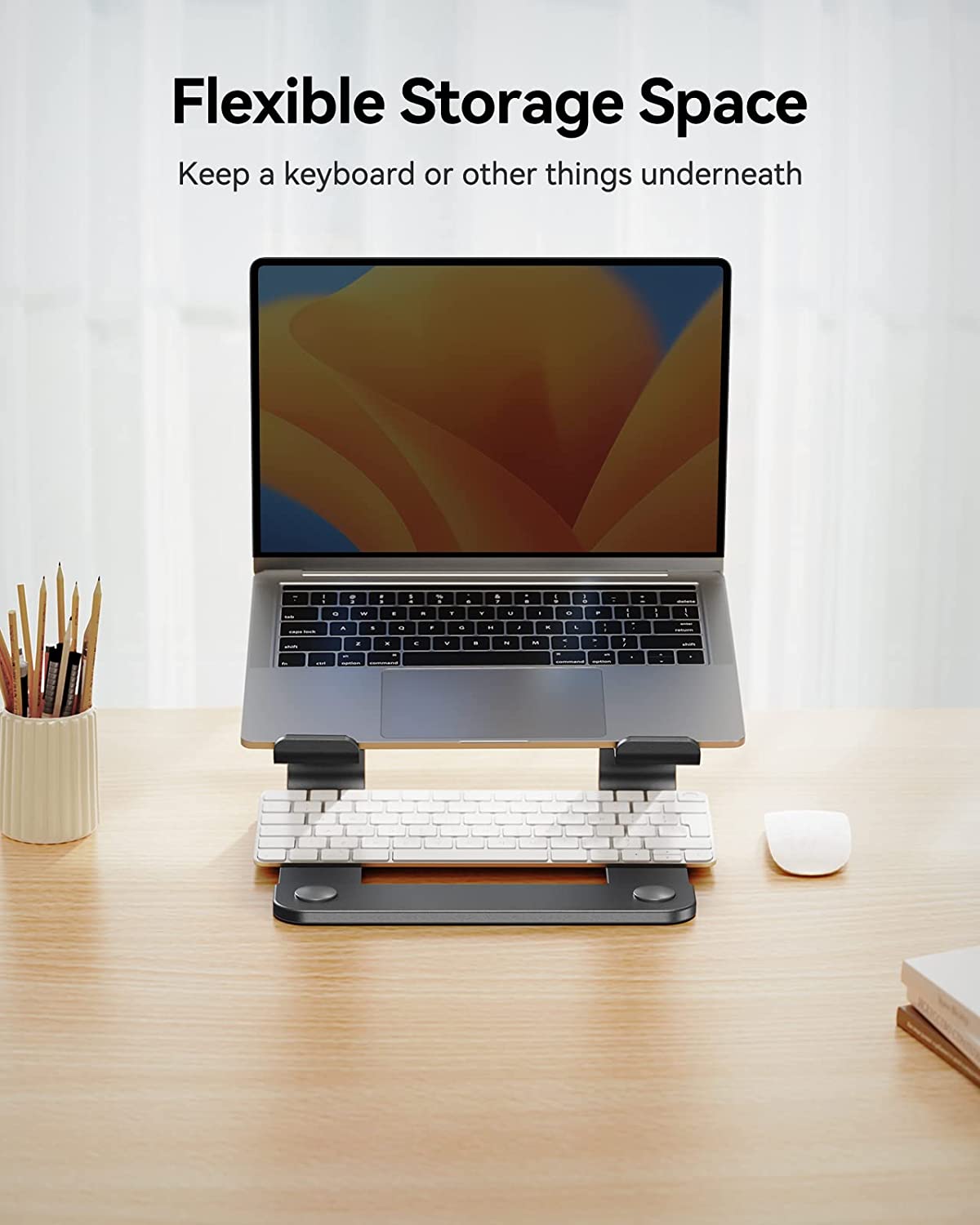 • Heat Dissipation - Keeping your laptop cool is the key to prolonging its service life. Using a laptop stand for desk will raise your laptop from a flat surface, which allows natural air to continuously cool your laptop and prevent it from overheating.