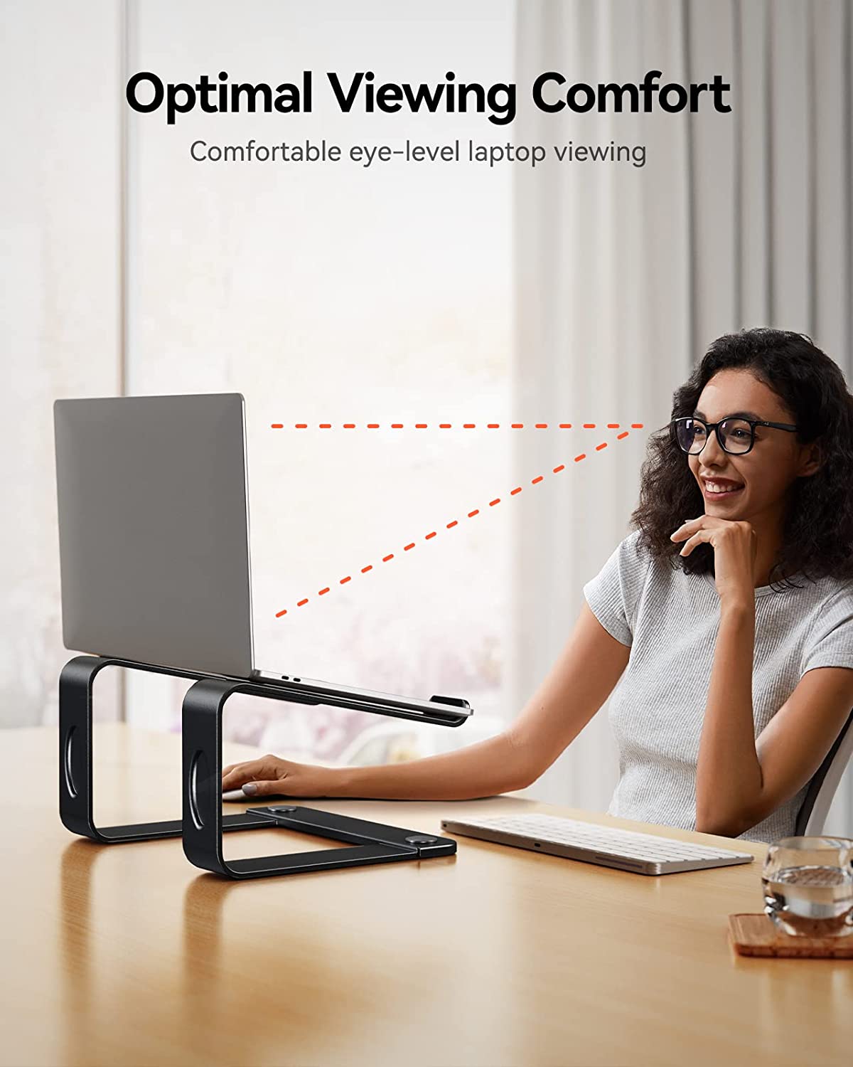 • Better Ergonomics - This laptop stand easily lifts your laptop to a higher level. It can help relieve posture related problems such as muscle strain, or neck and shoulder discomfort as you work. The keyboard can also be placed at an angle that is more ergonomic for typing.