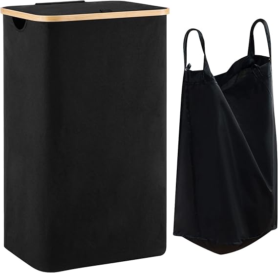 100L Large Laundry Hamper with Lid and Liner Bag, 27.6" Tall Laundry Basket with Handle, Waterproof and Collapsible Cloth Hamper for Bedroom and Bathroom, Black