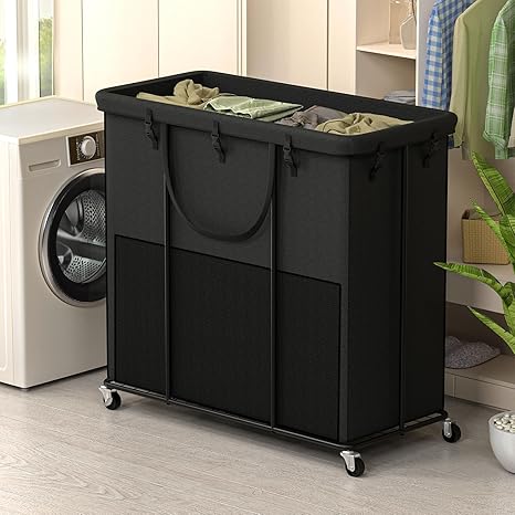 320L Laundry Basket With Wheels, Laundry Basket, Metal Frame and Removable Bag Design with Wheels, Suitable for Bathroom, Dorm Room&Laundry Room 320L(84.5Gallon) Black