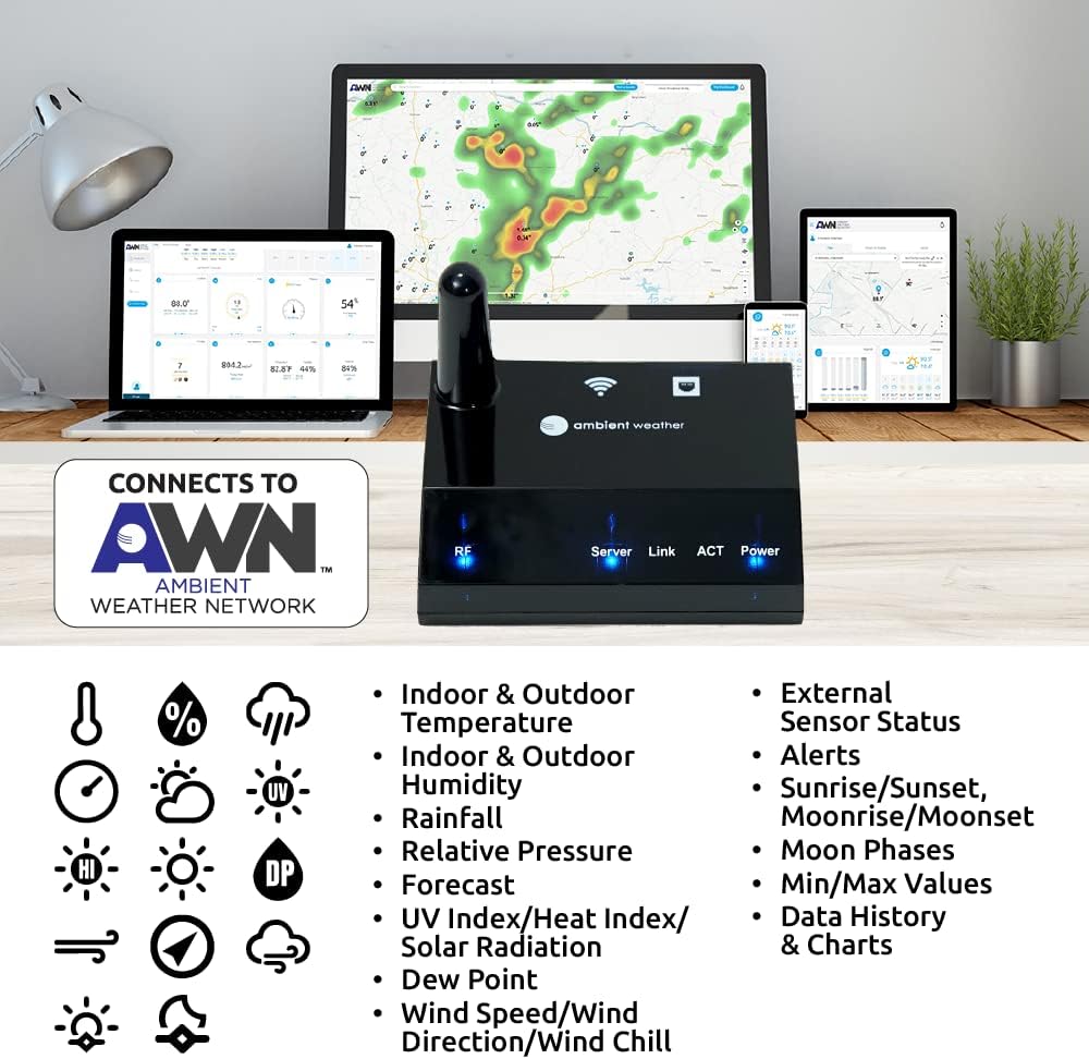 • JOIN THE COMMUNITY: Connect to Ambient Weather Network to customize your dashboard tiles, share hyperlocal weather conditions via social feeds and create your own forecasts (coming soon)