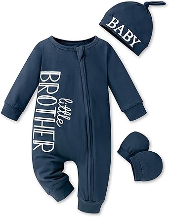 Baby Boy Clothes Letter Print One Piece Romper Baby Coming Home Outfits with Hat Newborn Boy Outfits