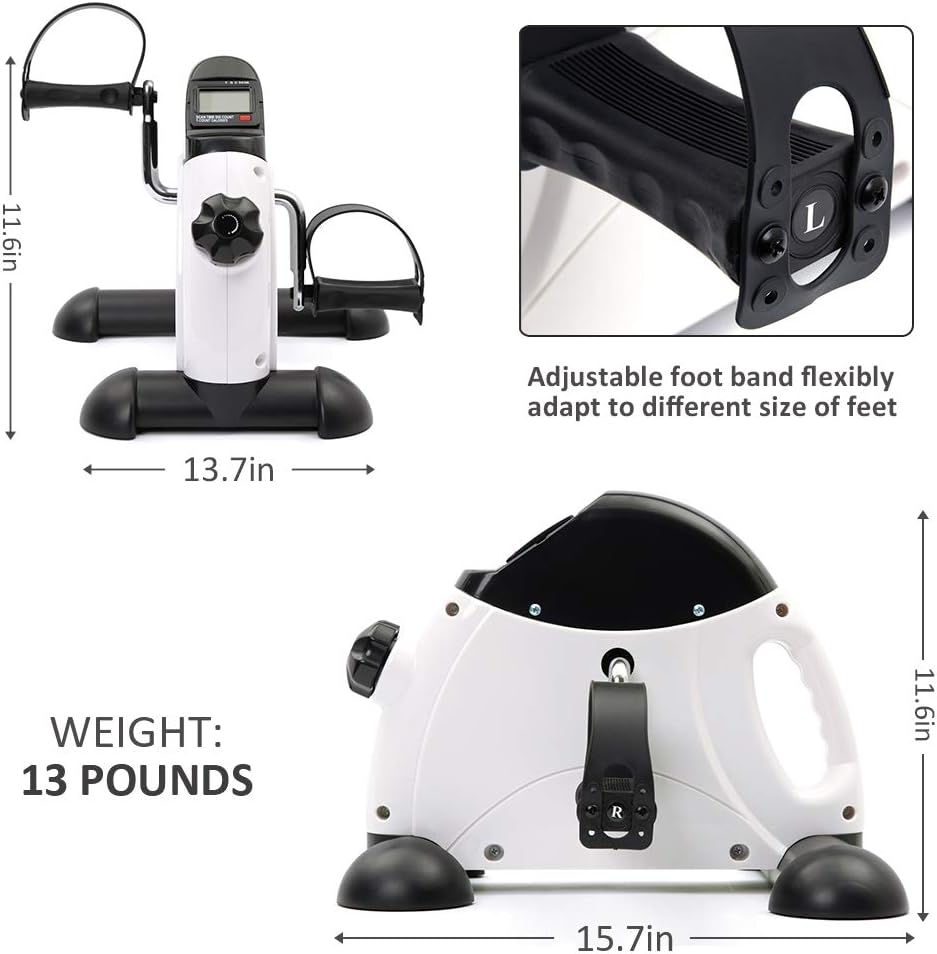 DECELI Under Desk Bike Pedal Exerciser - Portable Mini Exercise Bike for Arm/Leg Exercise, Mini Exercise Peddler with LCD Display(White)