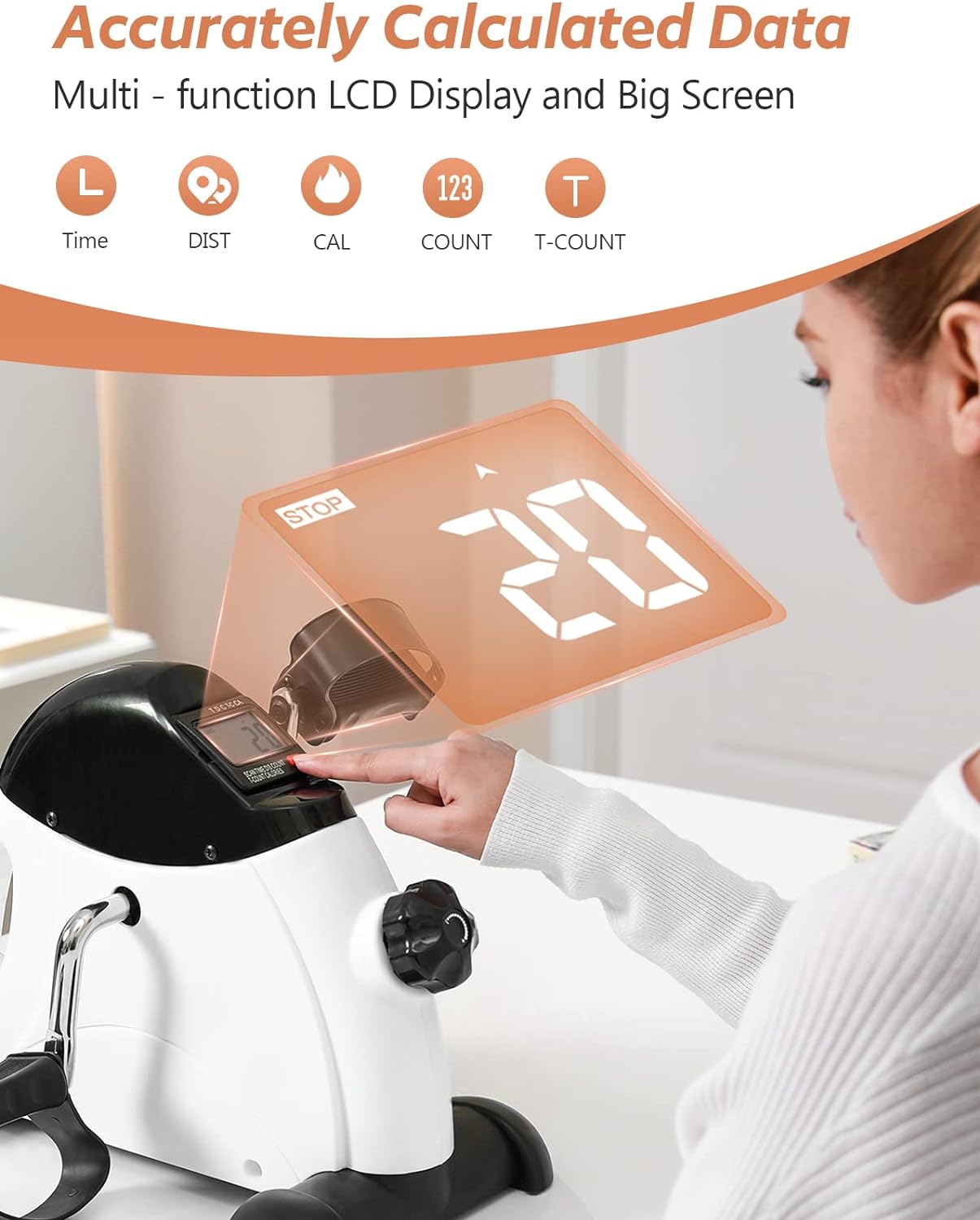FEIERDUN Mini Exercise Bike, Under Desk Bike Pedal Exerciser for Arm/Leg Exercise, Adjustable Magnetic Resistance Desk Cycle with LCD Screen Display for Home/Office Workout