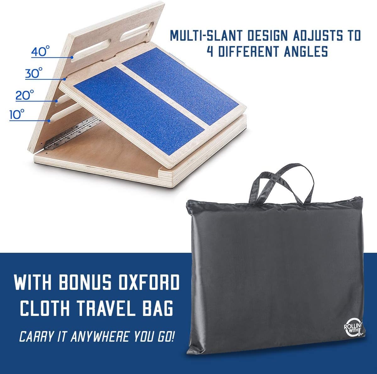 • ★ Premium oxford cloth carry bag: Take your recovery or fitness workout anywhere! Our foot ankle Slantboard measures 17 inches long by 13 inches wide and 2.5 inches thick when folded flat. Tested to support weights up to 350 lbs. It is lightweight, durable, portable and folds quickly and easily for storage and transport. Great under desk foot rest