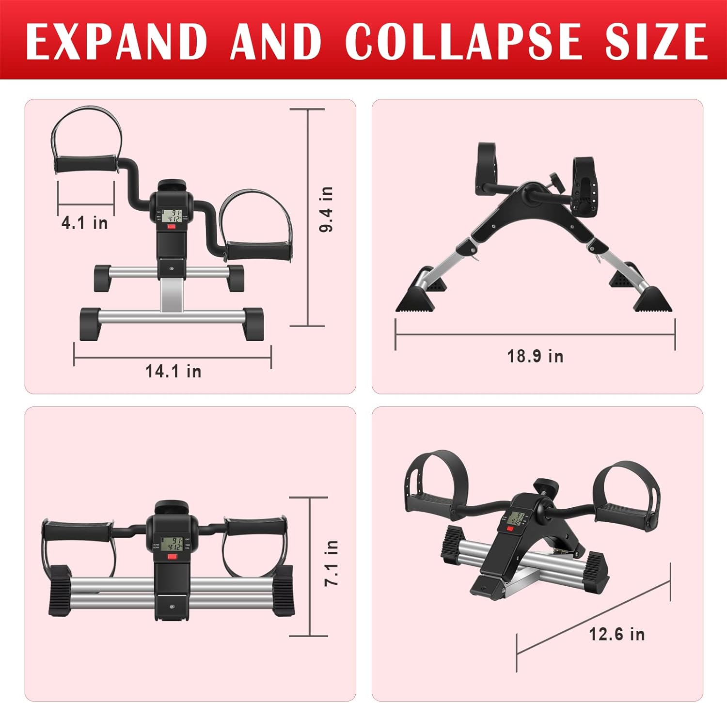 TABEKE Under Desk Bike Pedal Exerciser, Foldable Mini Exercise Bike for Leg and Arm Workouts, Fully Assembled Desk Bike Peddler Machine for Seniors with Clear LCD Display & Adjustable Resistance