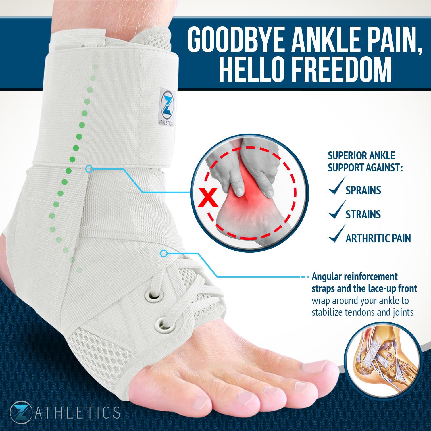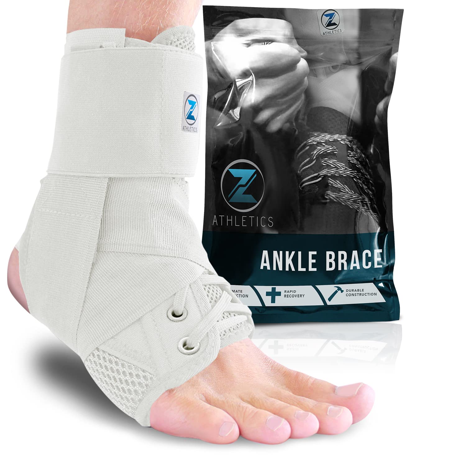 Z ATHLETICS Zenith Ankle Brace, Lace Up Adjustable Support – for Running, Basketball, Injury Recovery, Sprain! Ankle Support Wrap for Men, Women, and Children (Black, Medium)