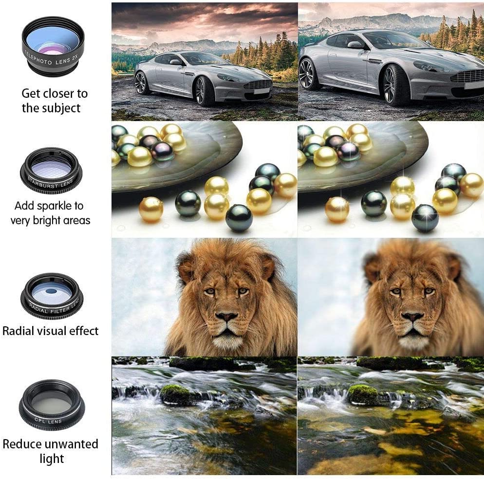• Comprehensive 11-in-1 lens kit: This camera lens kits includes literally anything you need for image, the universal detachable clamp with soft rubber pads lets you attach to your device in seconds, and allows you to easily swap between lenses.