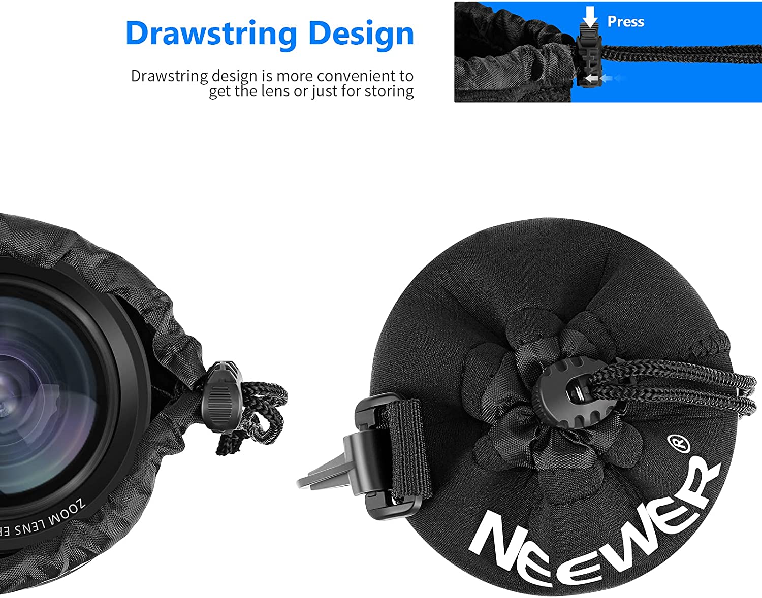 • 【Belt Loop & Snap Clip & Drawstring】 The lens case has a belt loop, snap clip, and drawstring for secure storage and convenient transport