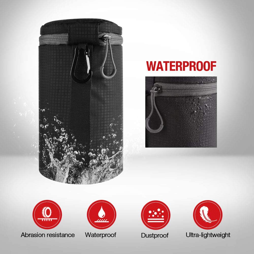 • HIGH QUALITY: The lens pouch is made of sturdy, thickening and water resistant nylon material, can well protect your lens from moisture, sand, dust and accidental bumps or scratches, perfect choice to place camera lens.