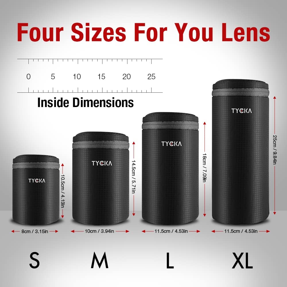 Tycka Lens Pouch, Water Resistant Camera Lens Case Bag with Zipper for DSLR Camera Lens 4 Sizes, Black