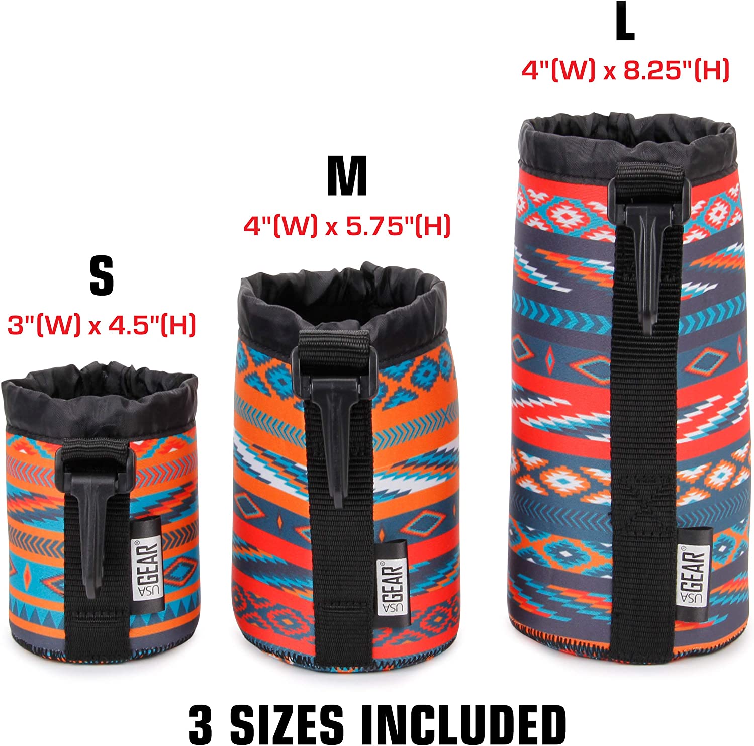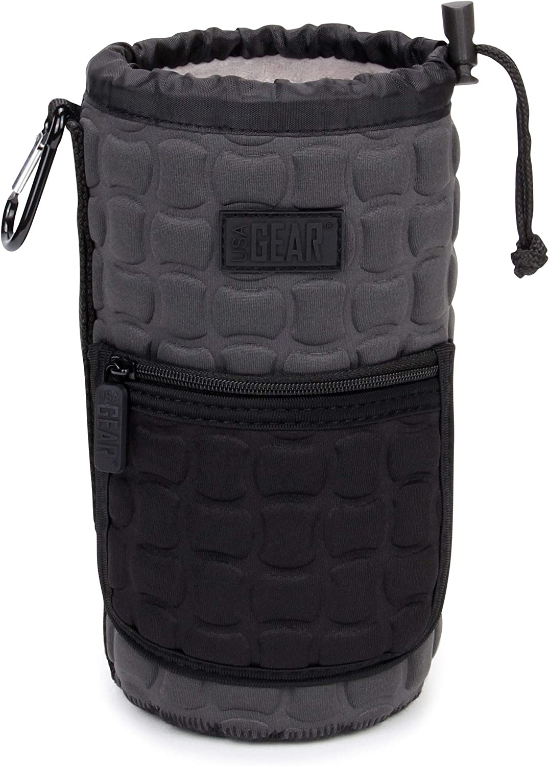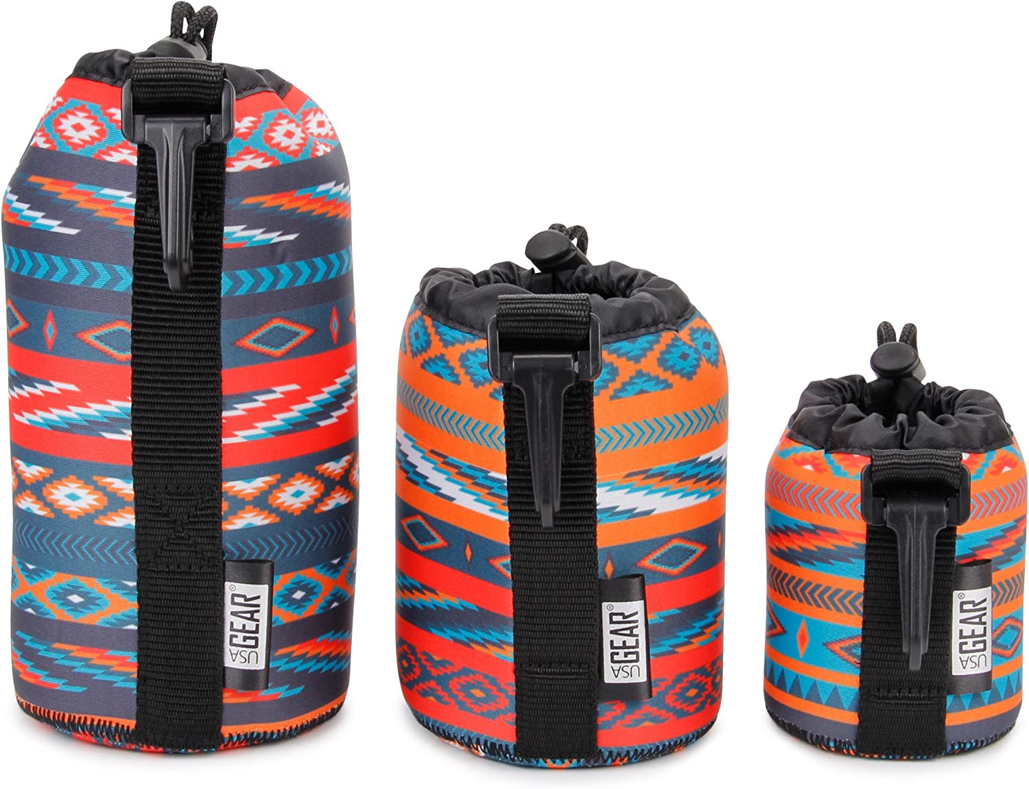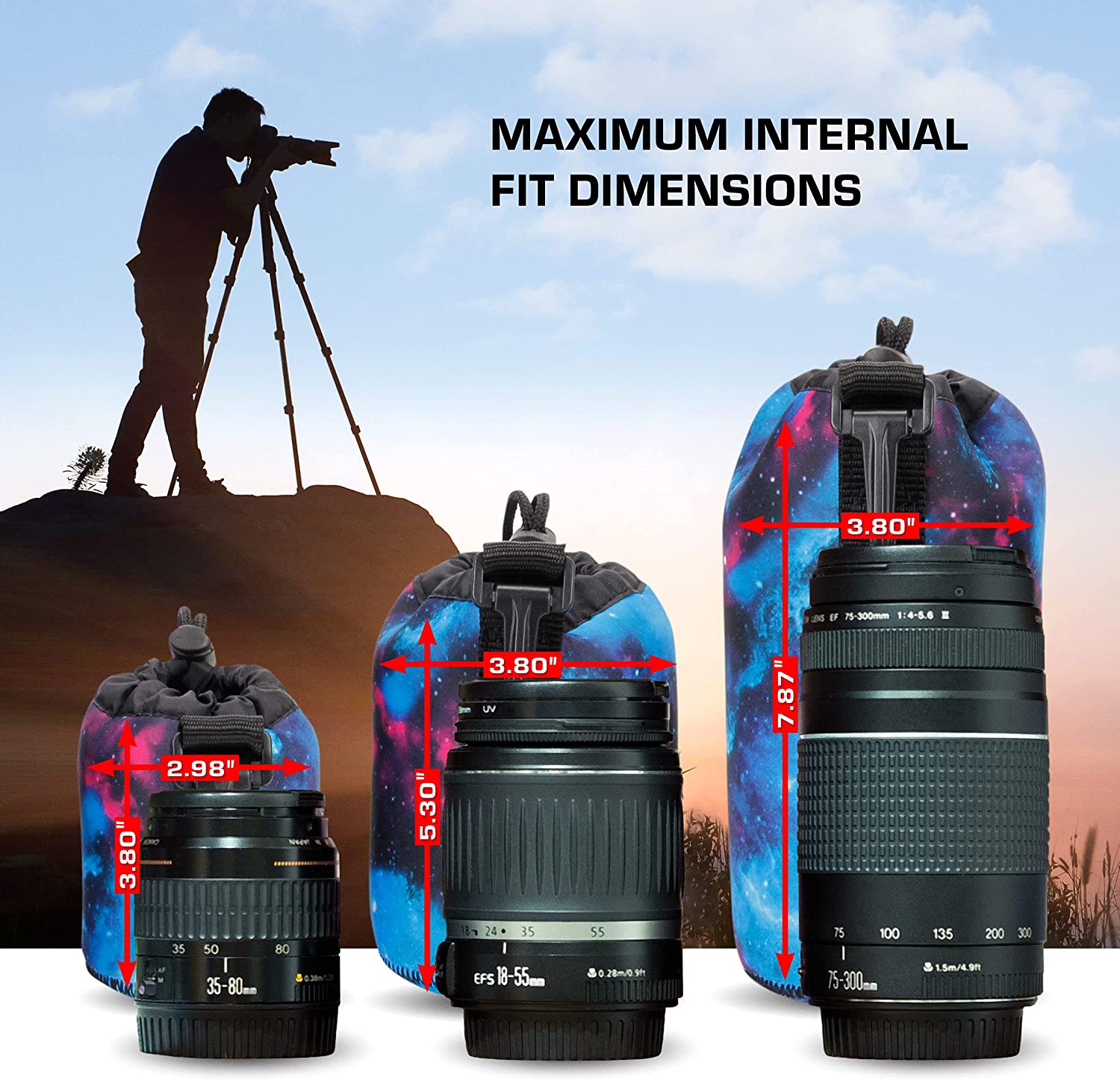 USA GEAR FlexARMOR Protective Neoprene Lens Case Pouch Set 3-Pack - Small, Medium and Large Cases Hold Lenses up to 70-300mm with Drawstring Opening, Attached Clip, Reinforced Belt Loop (Black)