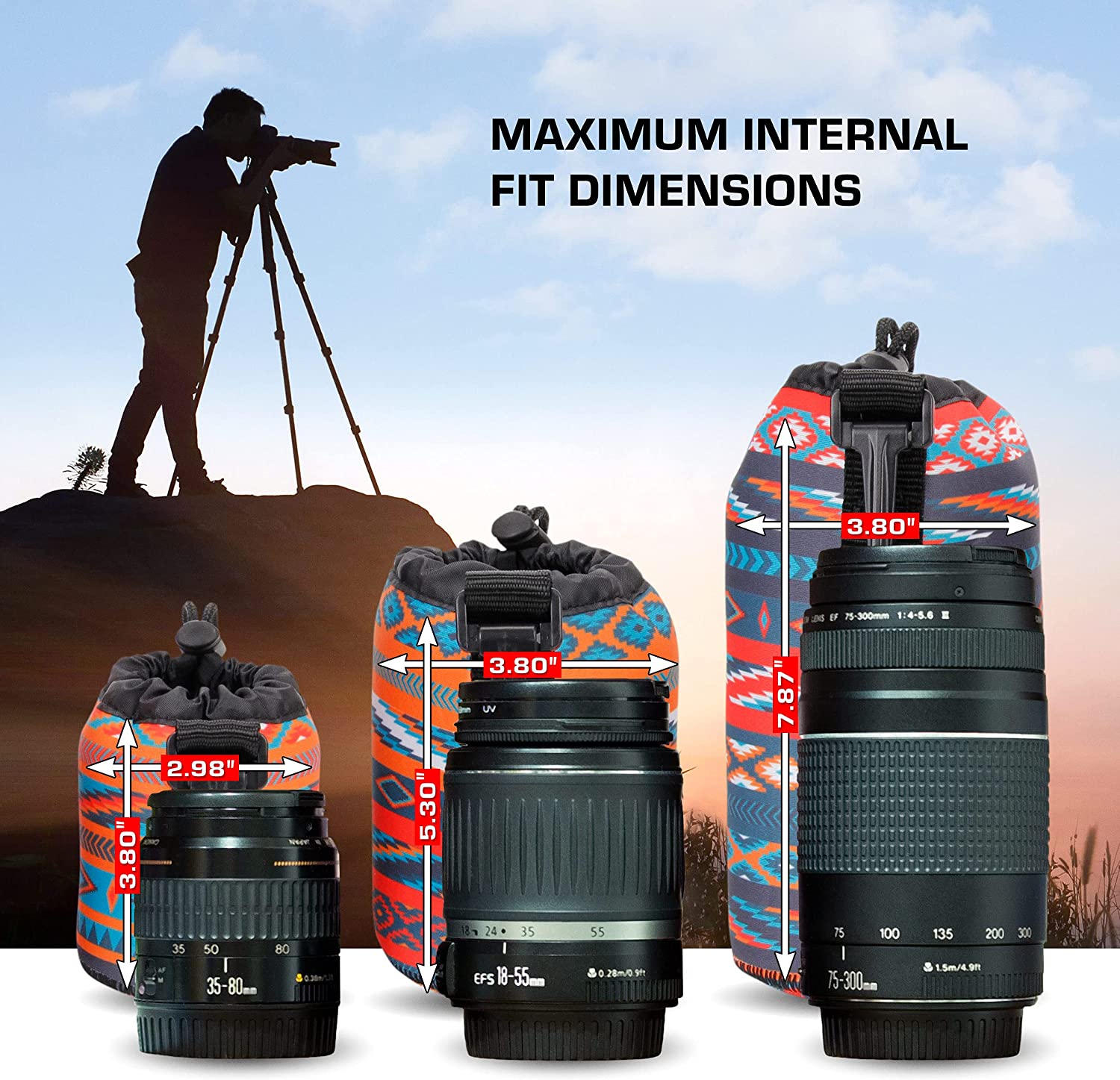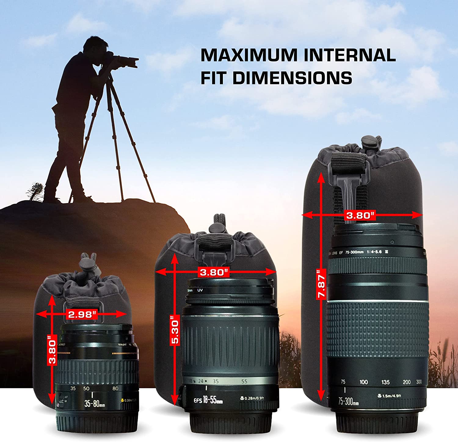 • DURABLE NEOPRENE EXTERIOR provides outstanding protection for your lenses. Keep them free from dust , moisture , accidental bumps and scratches