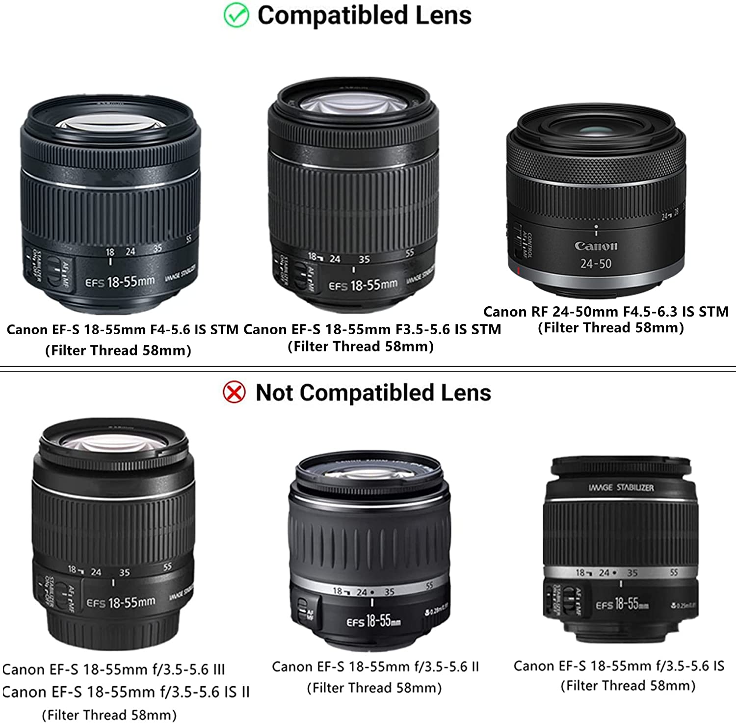 • Compatible Lens 1 : Canon EF-S 18-135mm F3.5-5.6 IS USM (Does Not fit 18-135 STM)