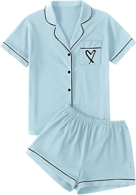 LYANER Women's Pajamas Set Heart Print Button Short Sleeve Shirt with Shorts Sleepwear PJs Set