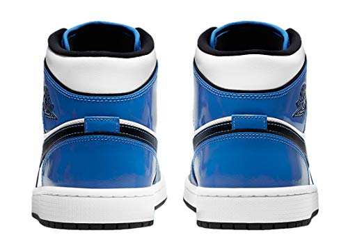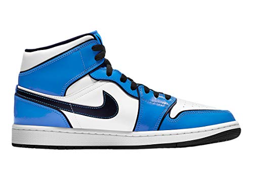 Details: The Air Jordan 1 Mid SE “Signal Blue” dresses the mid-top version of Michael Jordan’s first signature shoe in a clean and casual look reminiscent of the popular original “UNC” colorway. Appearing slightly darker in shade, the glossy Signal Blue leather panels on this Jordan 1 Mid nonetheless evoke the primary team uniform color of Michael Jordan’s alma mater, the UNC Tar Heels. Smooth white leather detailing can be found on the perforated toe and on the mid-panel and collar. Jordan Brand adds blue contrast stitching to the border of the black leather Swoosh branding on either side and places a black “Wings” logo on the collar. Black laces are layered on top of the blue nylon tongue. A black liner and black Jumpman on the tongue tag finish off the look.