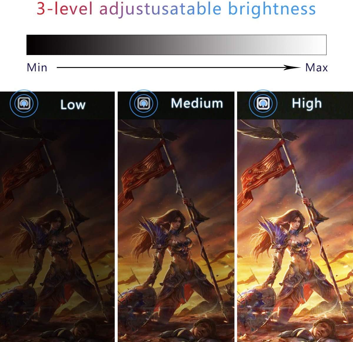 • Adjustable Brightness: Touch sensor switch design, easy to turn on/off, keep pressing the button till you get the ideal brightness. The illumination is perfectly and flicker free to protect your eyes