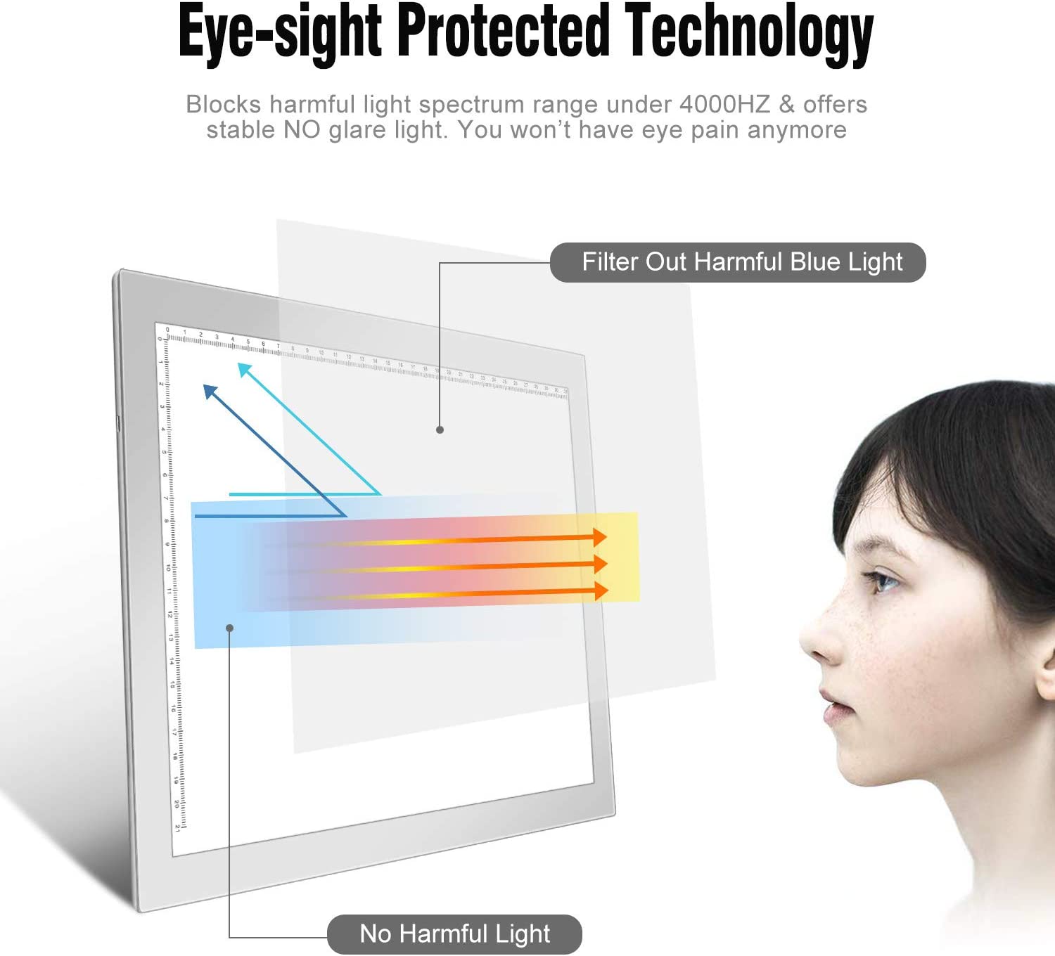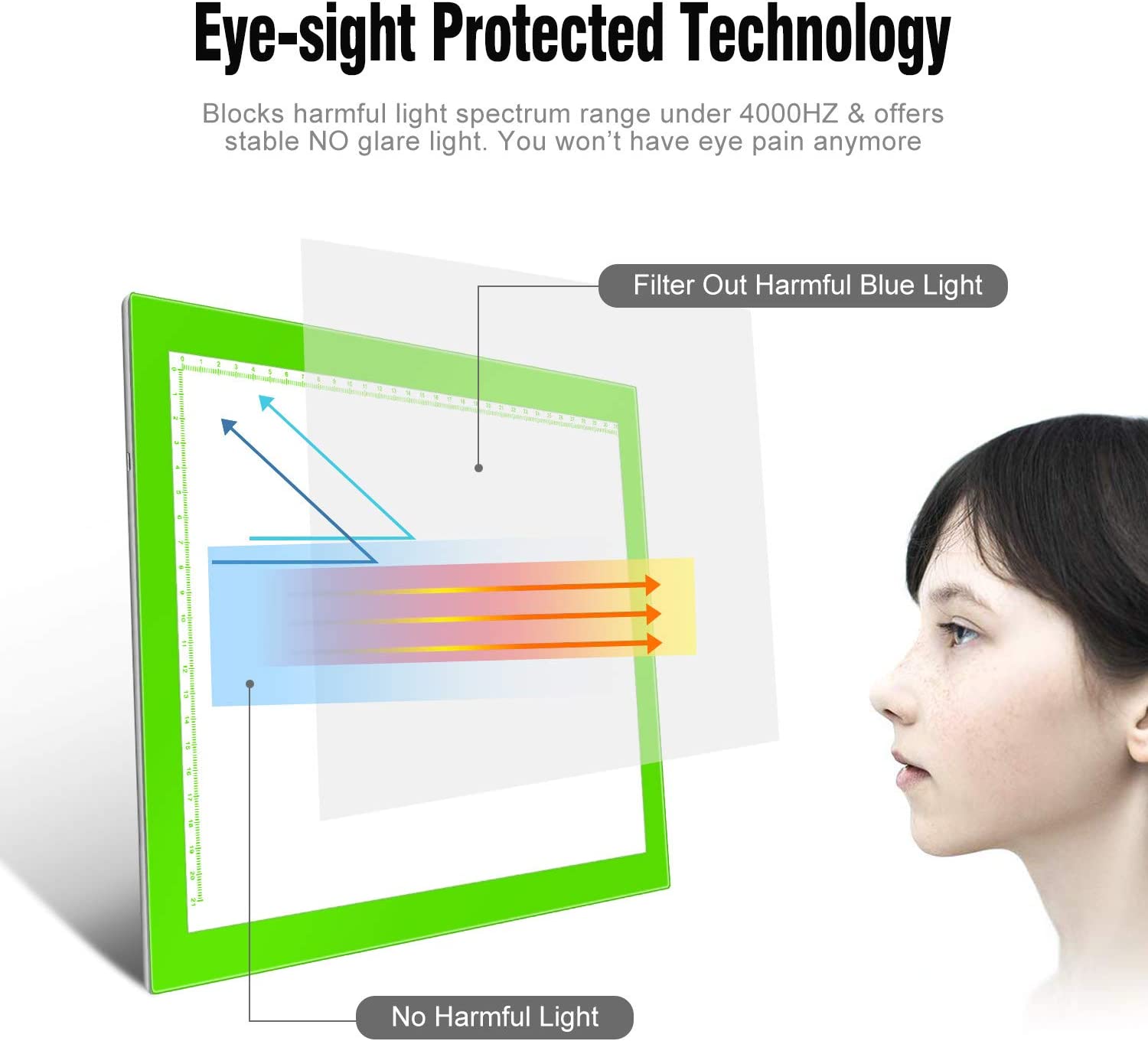 • ADJUSTABLE BRIGHTNESS -- The light pad is STEPLESS adjustable, simply keep pressing the touch switch for several seconds until you get the desired brightness you want. It’s gradual dimming effect. The light with energy efficient flicker-free LED lamps, provides a perfectly even illustrated surface.