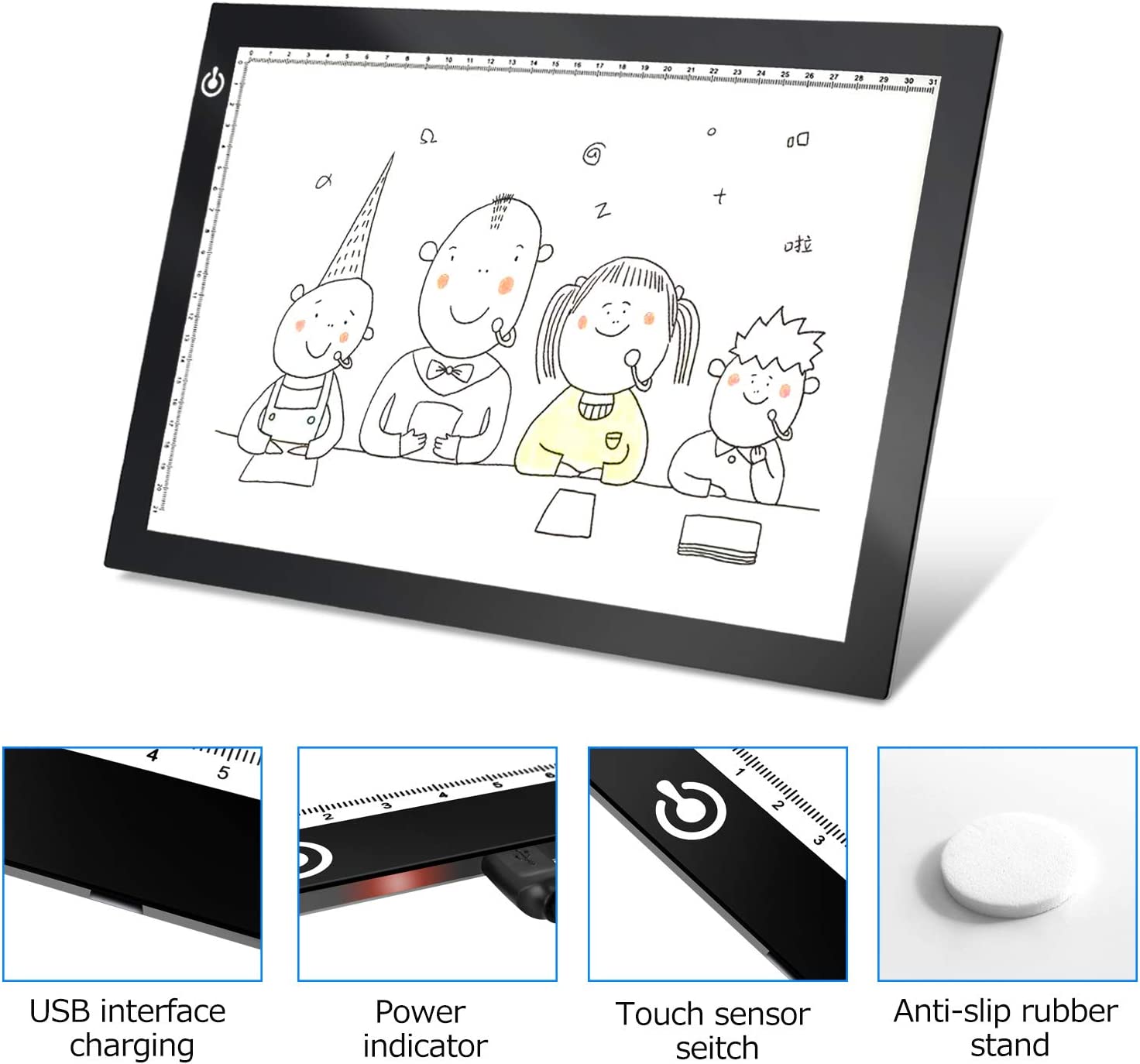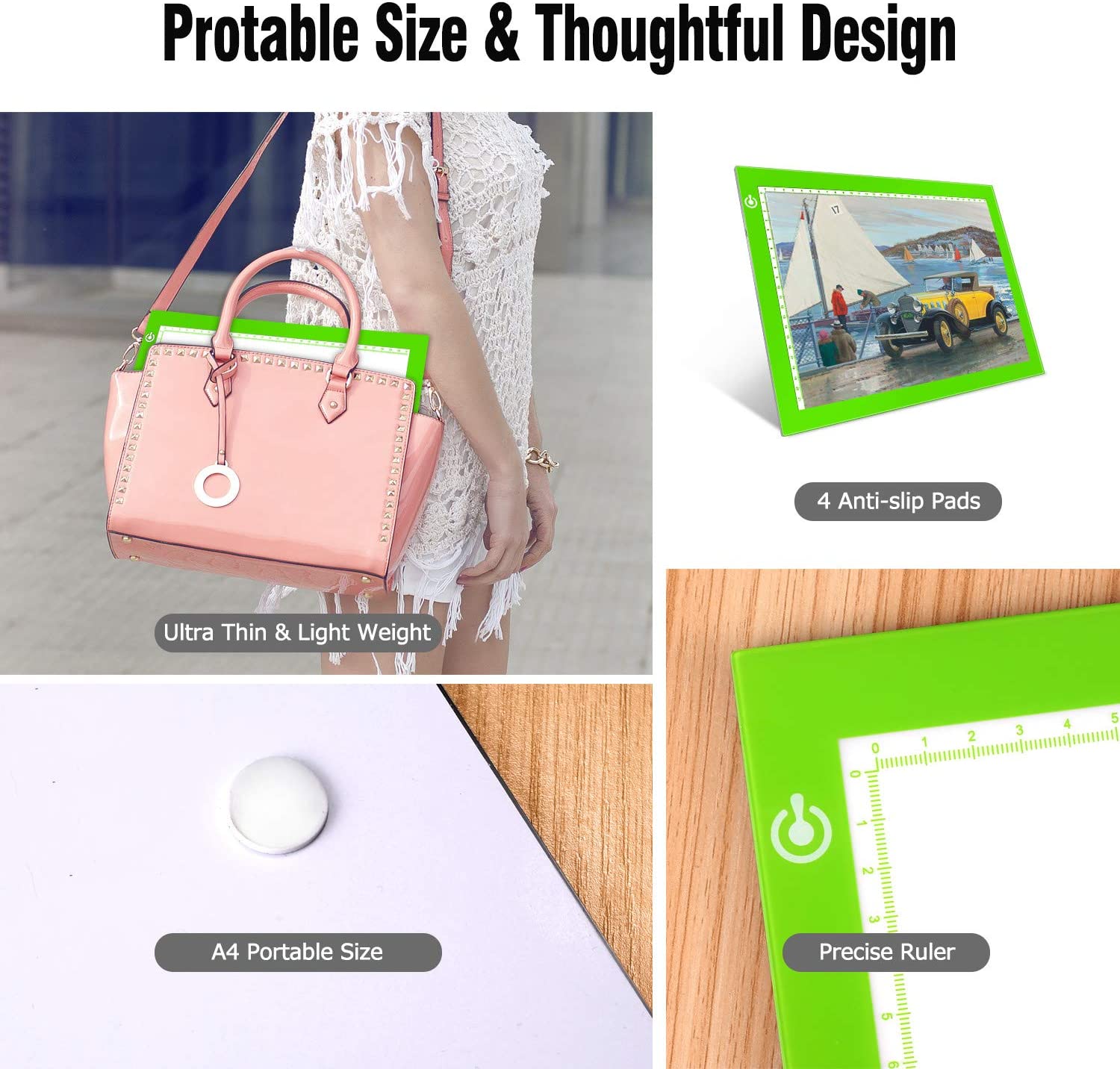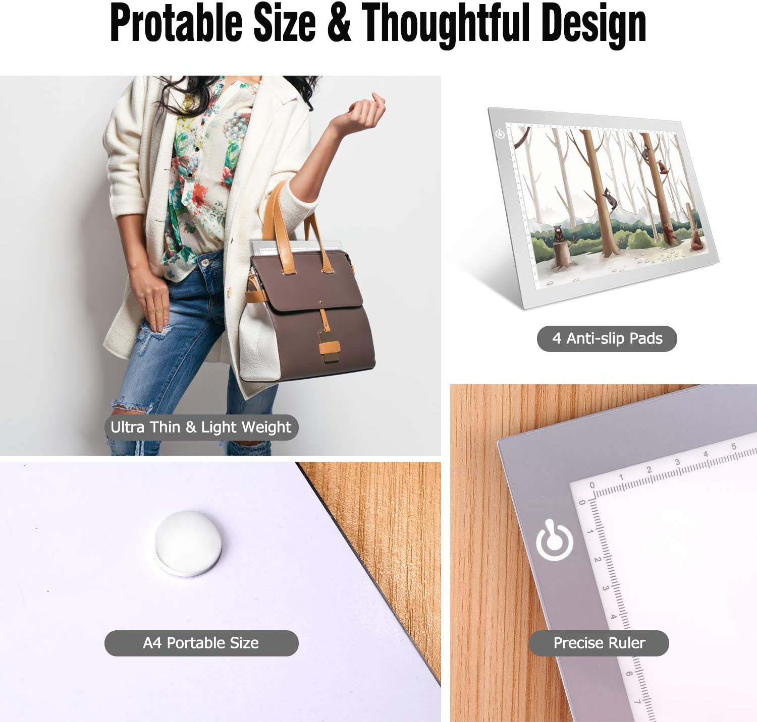 • USB POWERED -- The tracer light box comes with 1pc USB power cable, you can use this USB cable to connect the light pad to any 5VDC output device, such as computer, power bank or the adapter.