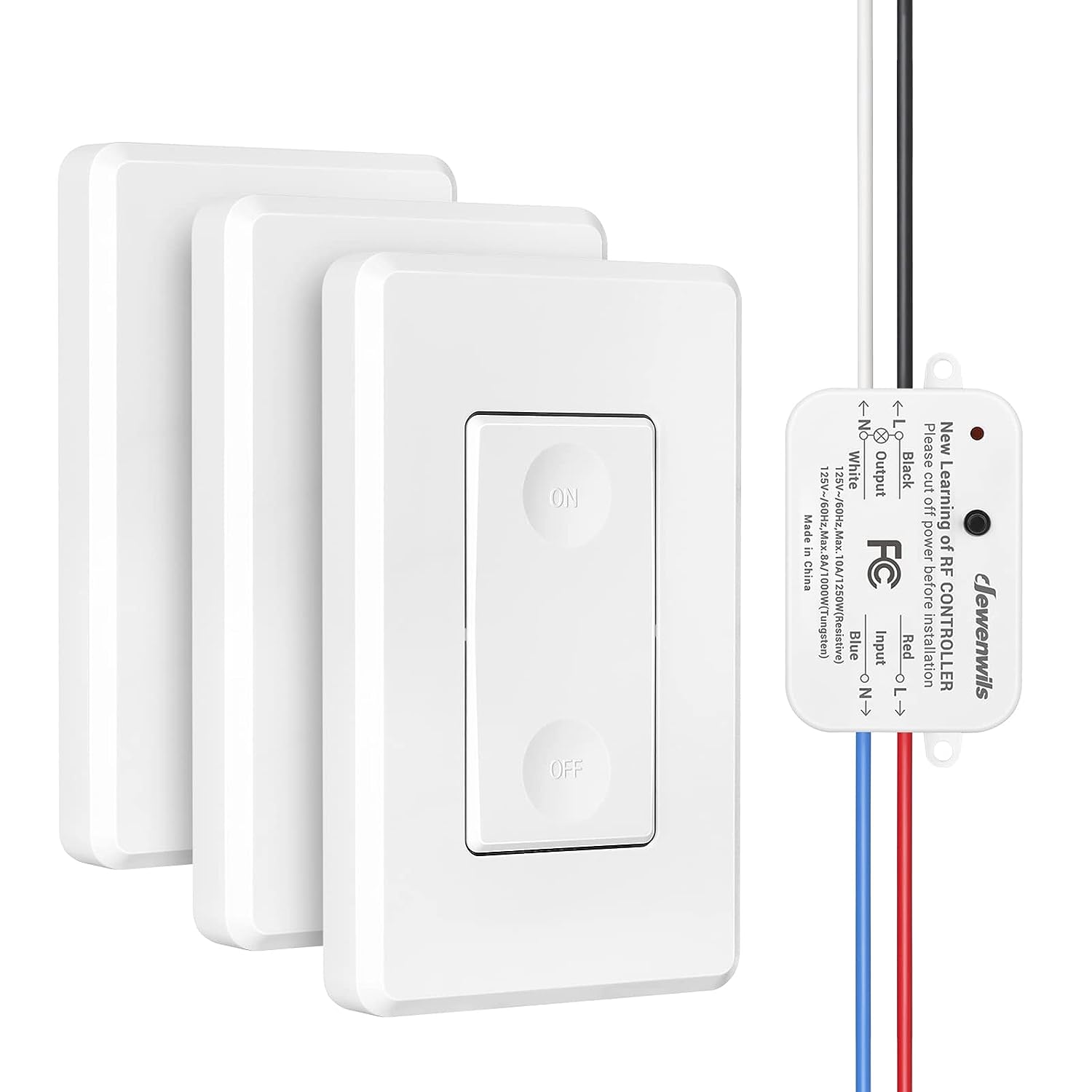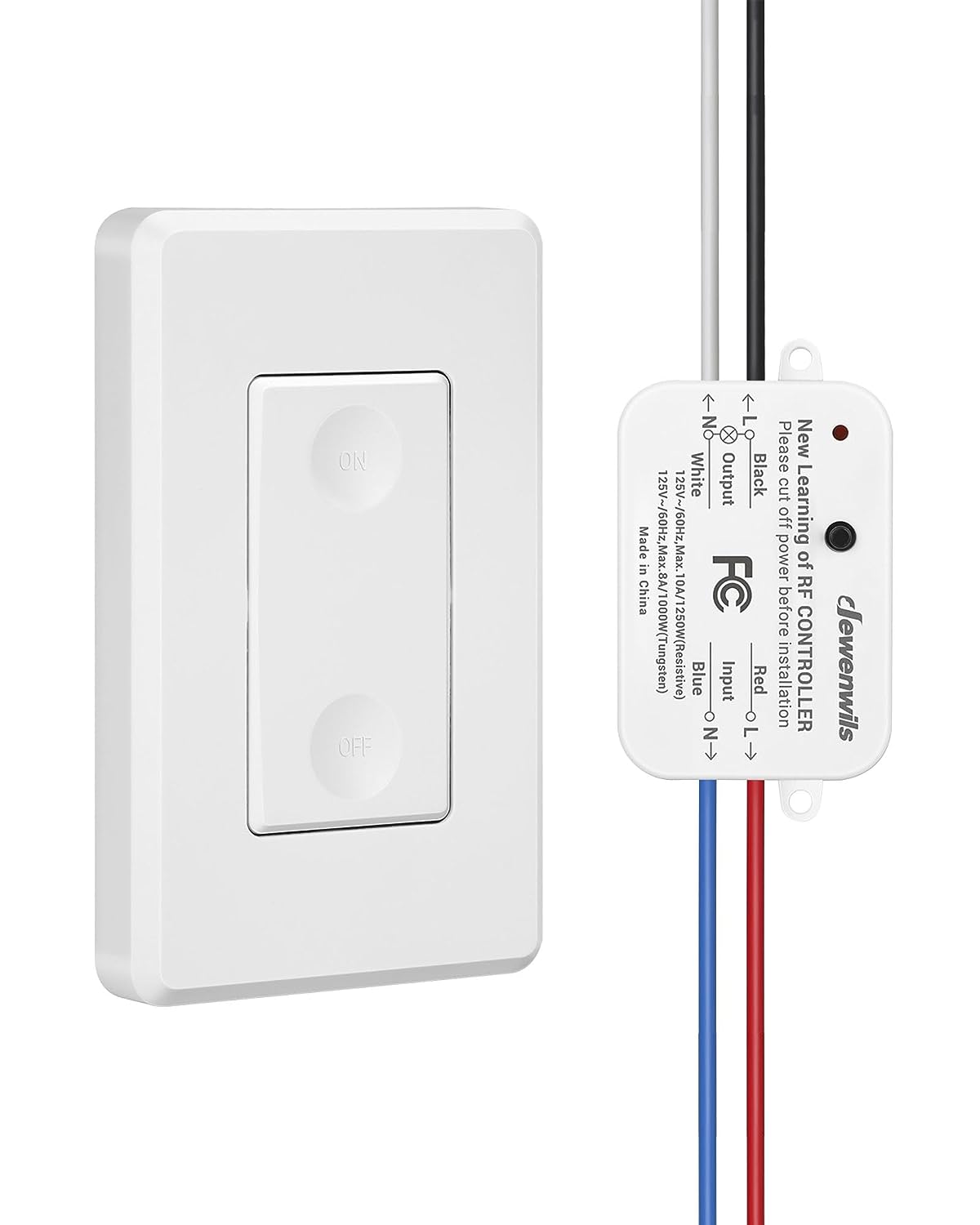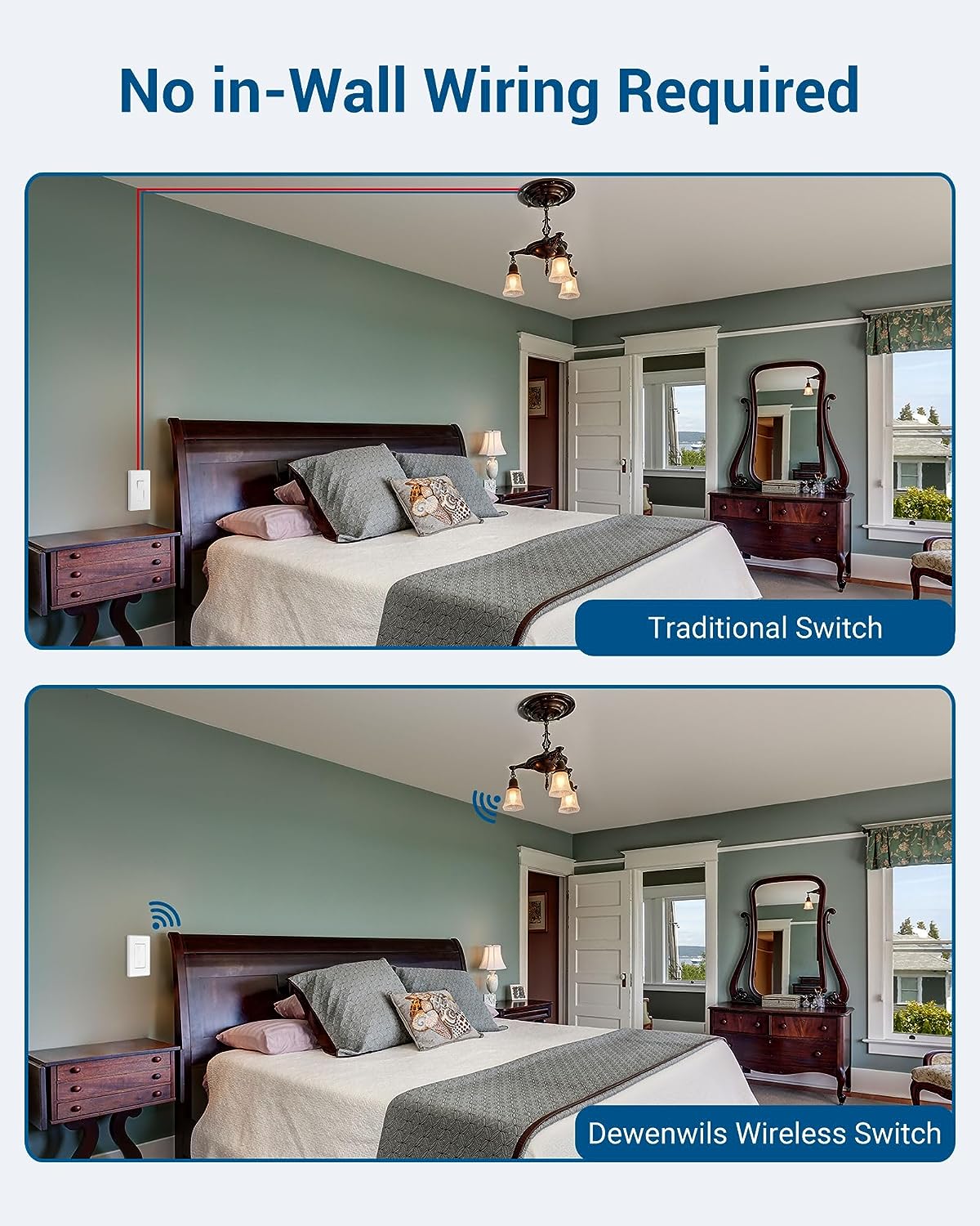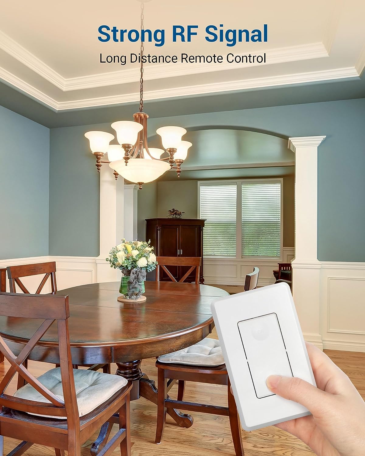DEWENWILS Wireless Light Switch and Receiver Kit, No in-Wall Wiring Required,Remote Control Wall Switch Lighting Fixture for Ceiling Lights, Fans, Lamps,100 Ft RF Range, Programmable