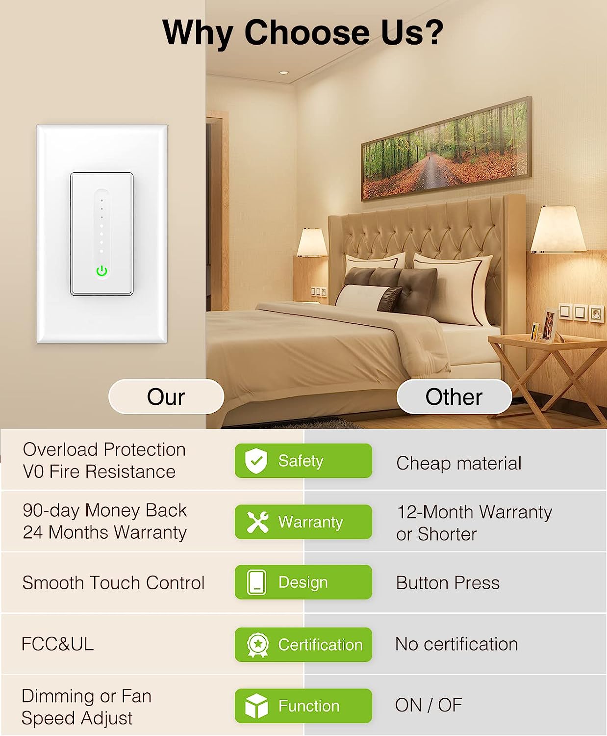 Our smart dimmer switch comes with a timer and scheduling function, support voice, and APP control. Also, This smart dimmer switch adjusts the light dimming range from 1 –100% to cut energy costs and extend bulbs life and has an elegant touch dimming interface that looks wonderful on the wall. It’s very convenient to auto a smart home and also ideal little gadgets for elderly and physically challenged people.