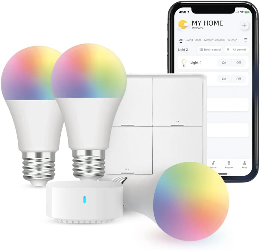 Broadlink Smart Home Starter Kit - Includes 3 Bulbs, 1 Scene Switch and 1 Hub, Uses FastCon and BLE Tech, Works with Alexa and Google Home