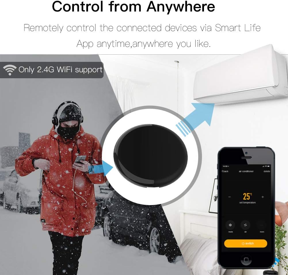 • 5.Customized DIY learning function; copy same function from original IR remote to control Devices such as fireplaces, heater, ceiling fans; Only supports 2.4G Wifi connection; includes full 2-year warranty with 60-day refund guarantee.