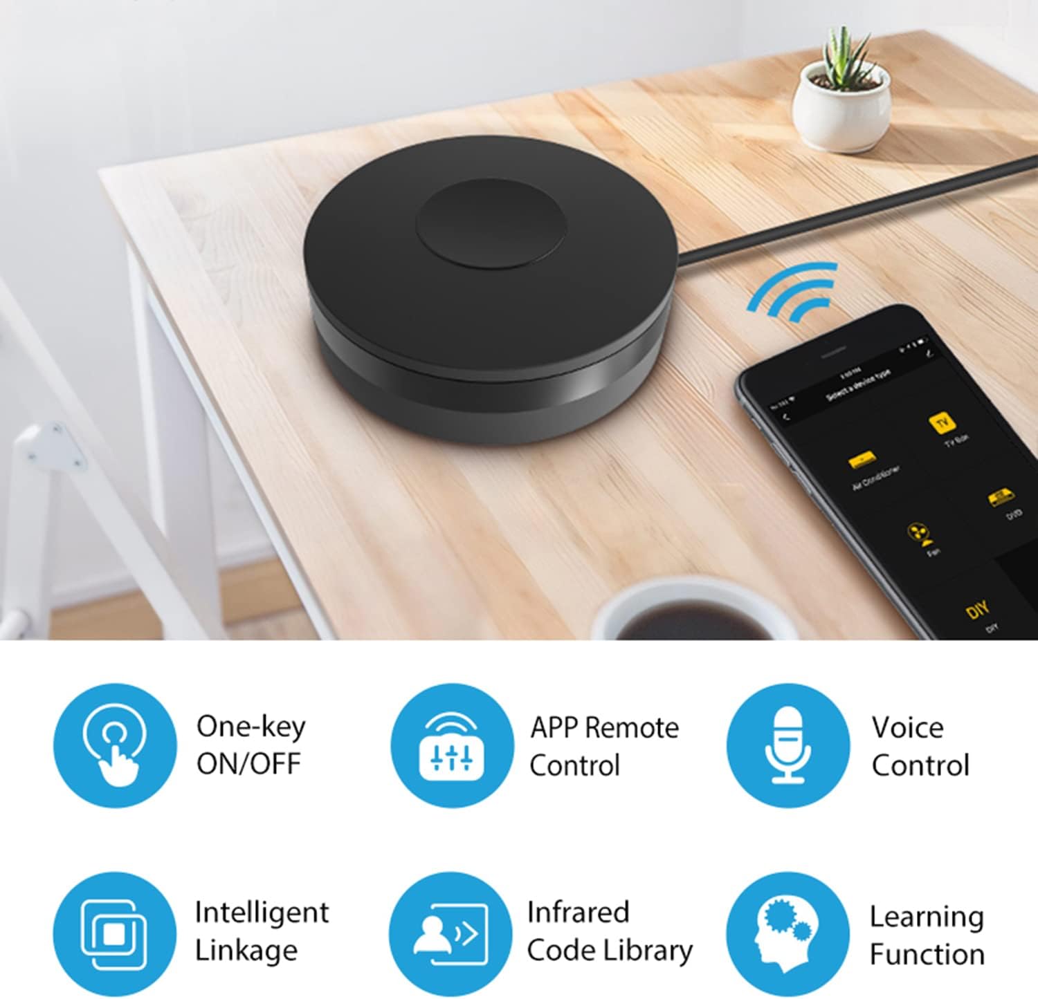 • DIY FUNCTION: Support DIY function to manual learning of the original controller as needed, Copy same function from original IR/RF remote to control Devices such as fireplaces, heater, ceiling fans, solve your problem of finding a remote controller or the appliance model is not available on the app.