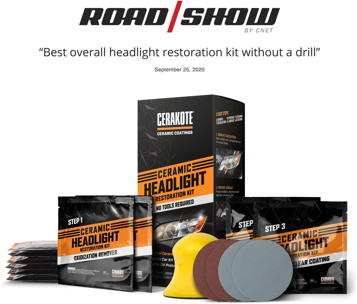 CERAKOTE® Ceramic Headlight Restoration Kit – Guaranteed To Last As Long As You Own Your Vehicle – Brings Headlights back to Like New Condition - 3 Easy Steps - No Power Tools Required