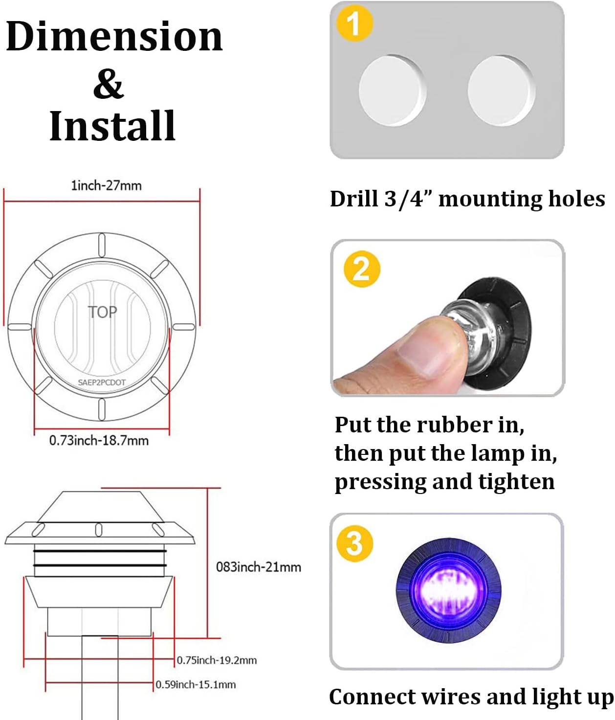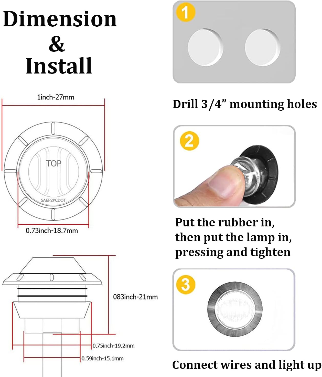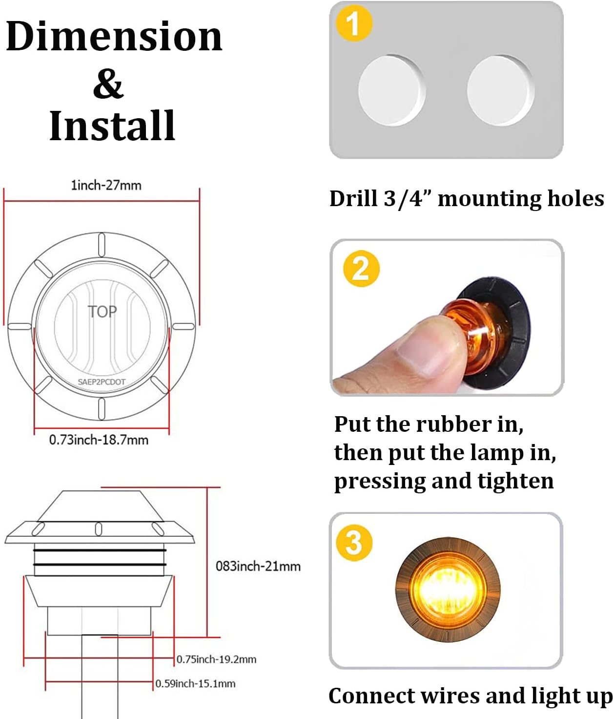 • It can be used as clearance Lamps, side marker or identification light,Trailer Light etc. 3 colors of light for your choice: amber,white,red.