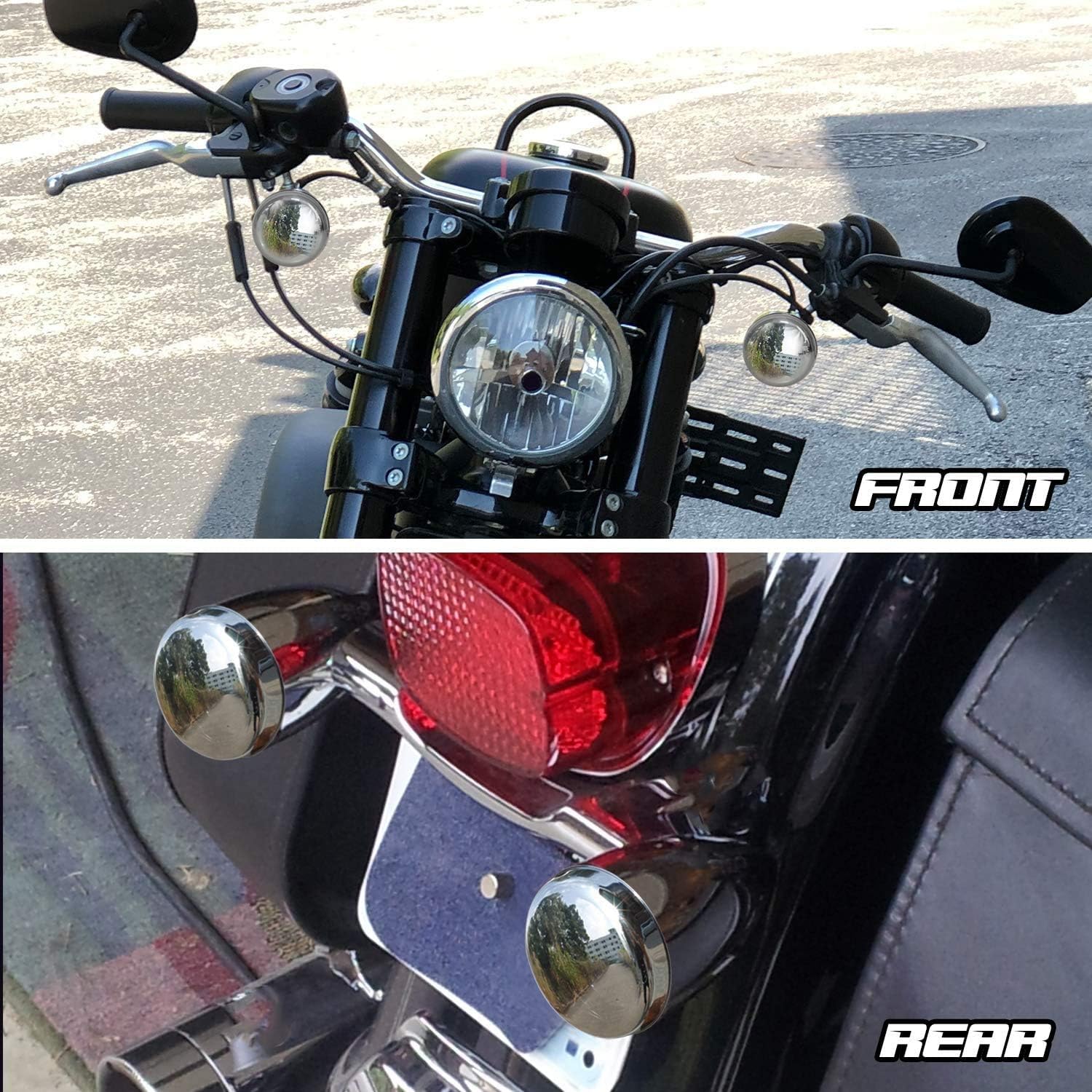 • Compatible with Harley Dyna, Street Glide, Fat Boy, Softail, Road King, Springer, and other models with 2 inches standard new bullet style turn signal lights only, not for aftermarket replacement housing