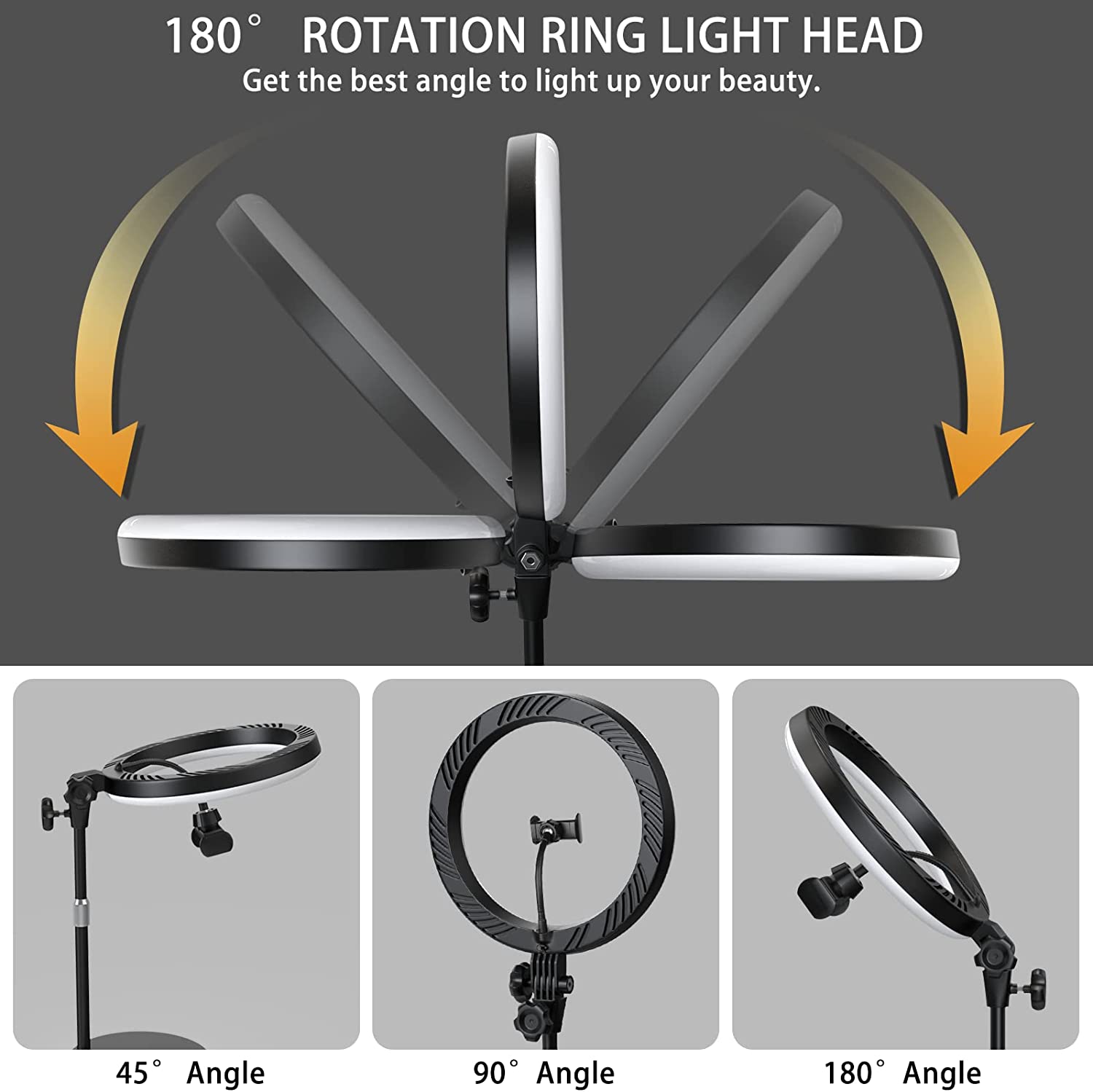 • 👉【METAL DISC BASE & UNIVERSAL PHONE HOLDER】This phone ring light with a weighted metal disc base gives the lamp sufficient stability and the bottom of base is covered with foam rubber to avoid scratches the desk. The mobile phone holder fits most smartphones up to 3.35inches, compatible with iPhone 12/12 Pro Max/12 Mini/SE 2020/iPone 11/11 Pro Max, iPone 10/10 plus/ Samsung Galaxy S21/S20/Note 20/A70 etc.