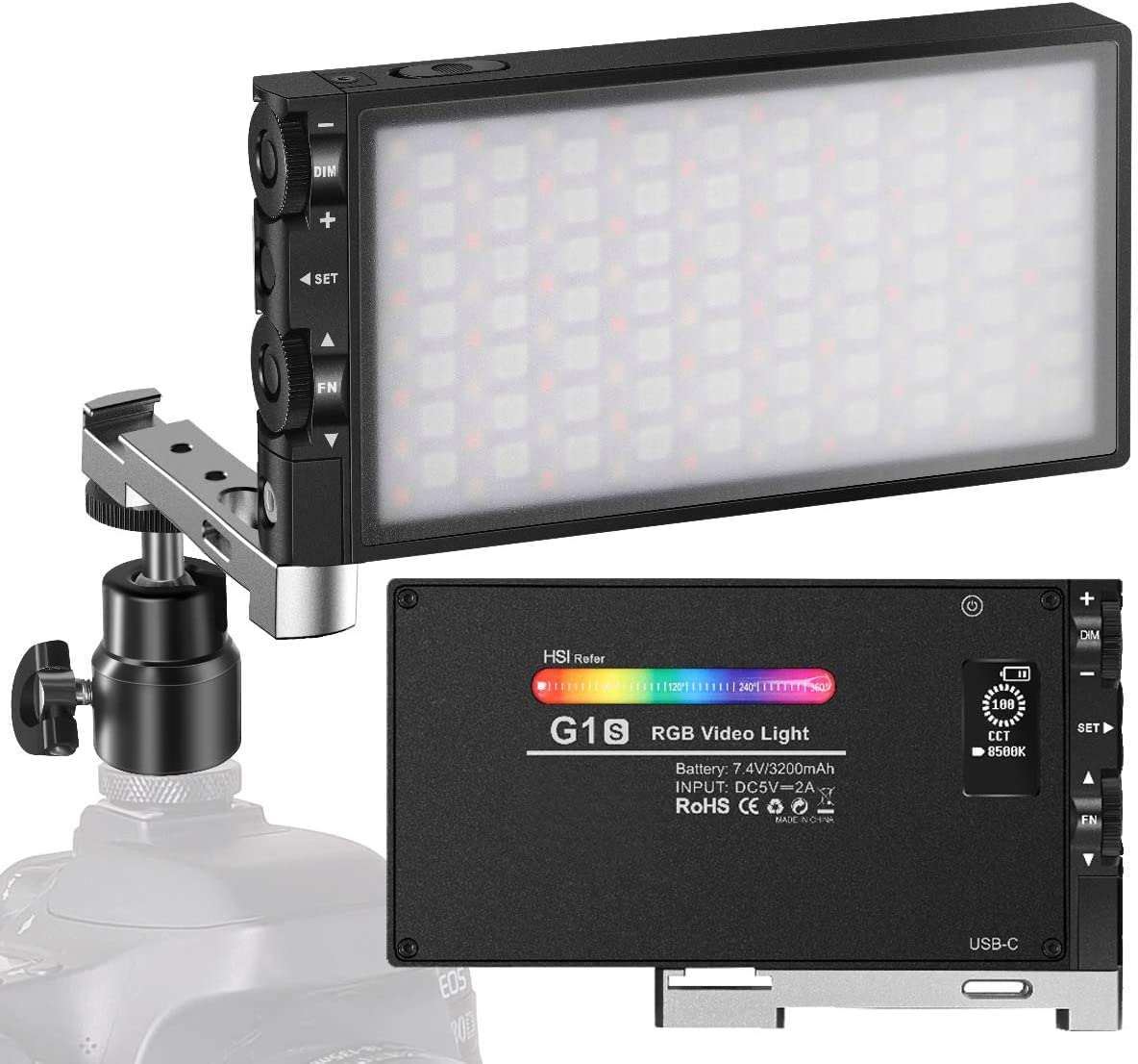 G1s RGB Video Light, Built-in 12W Rechargeable Battery LED Camera Light Full Color 12 Common Light Effects, CRI≥97 2500-8500K LED Video Light Panel with Aluminum Alloy Body