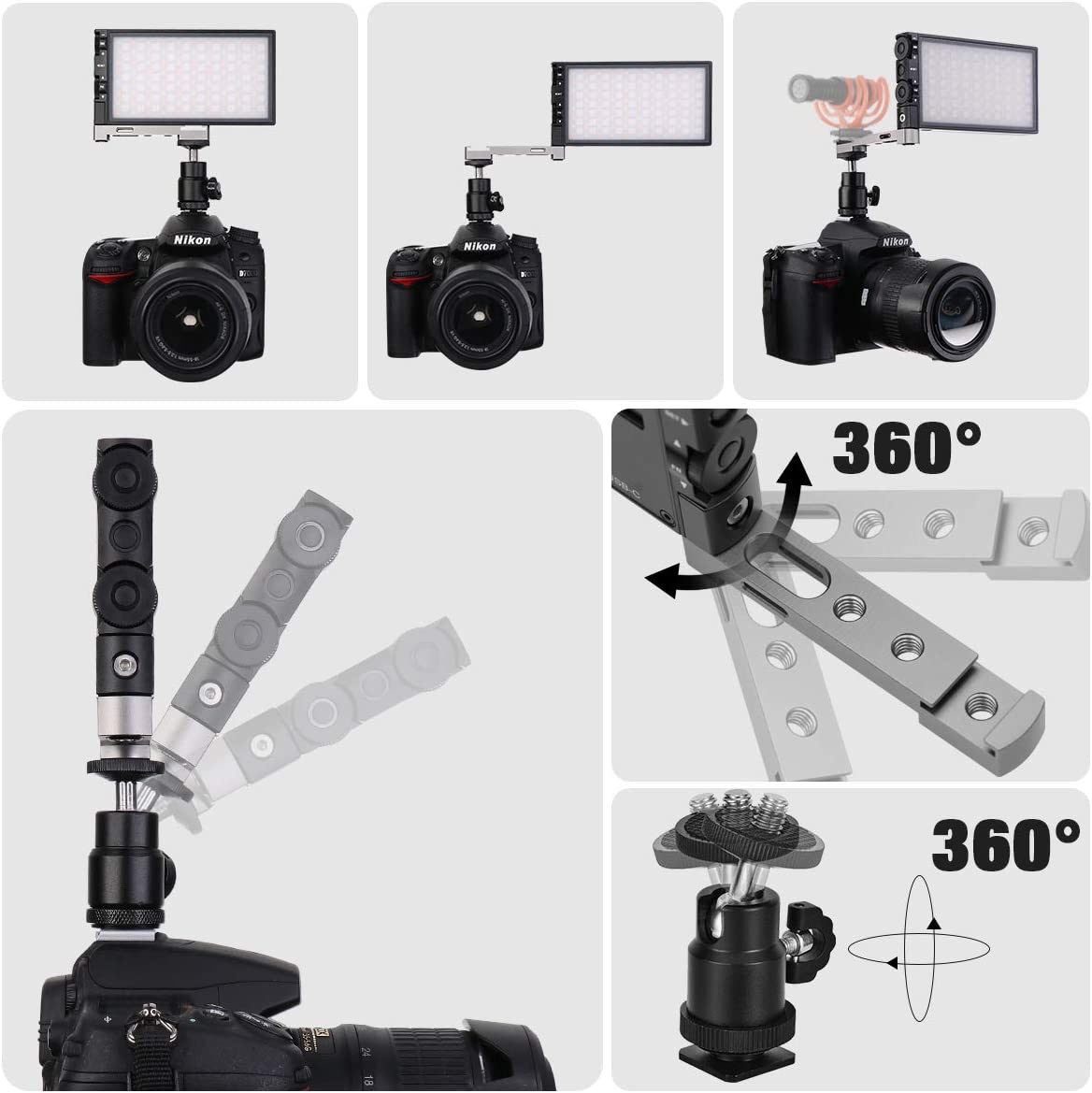 • 【ROTATE ARM with COLD SHOE】Our LED panel light equipped with a 360 degree rotate arm with cold shoe allows you can mount any devices with hot shoe adapter simultaneously, such as camera microphone, perfect for recording.