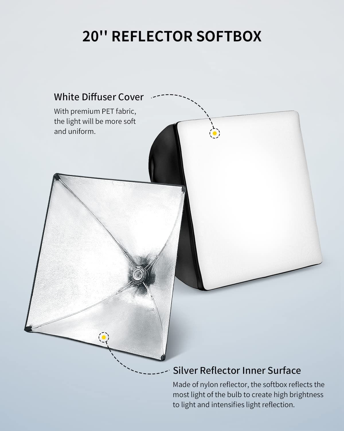 • 【Exquisite Softbox】In terms of materials, we have used stiff and strong nylon cloth, and the inner lining of silver-coated stone road reflective cloth has also been upgraded. That's why our softboxes look so elegant and sophisticated. The tall and straight body makes you intoxicated, and you can use it for video recording/portrait photography/live fill light. Small body, big effect