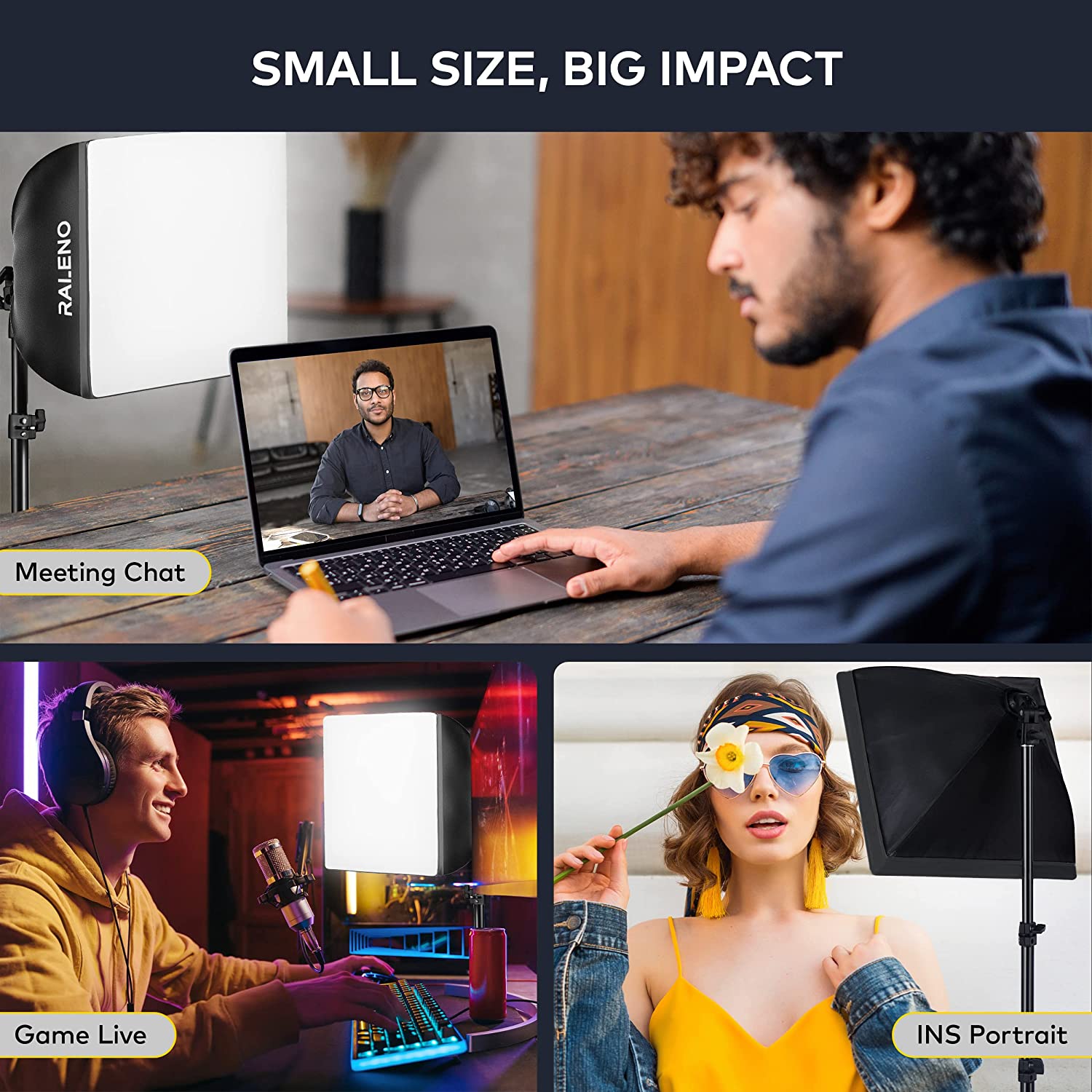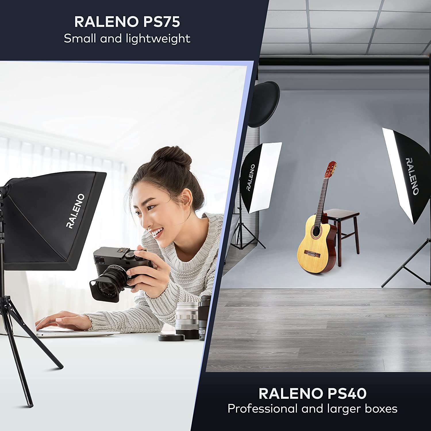 • 【Super Bright Mini Softbox】RALENO softbox lighting kit led achieves a smaller size with the same level of brightness. The box light is more convenient to use or store. The lightweight photography case can be used both on the ground and on a tabletop