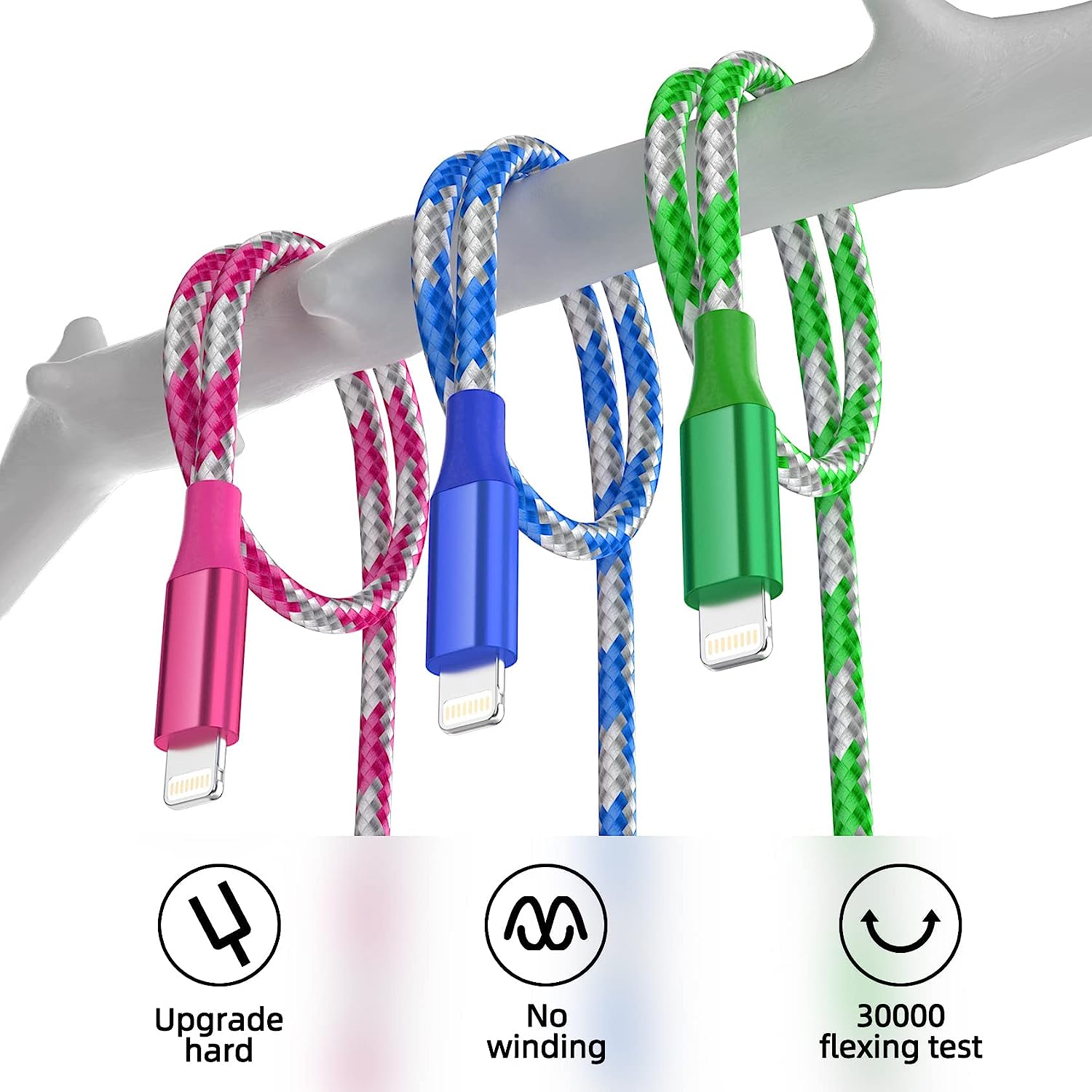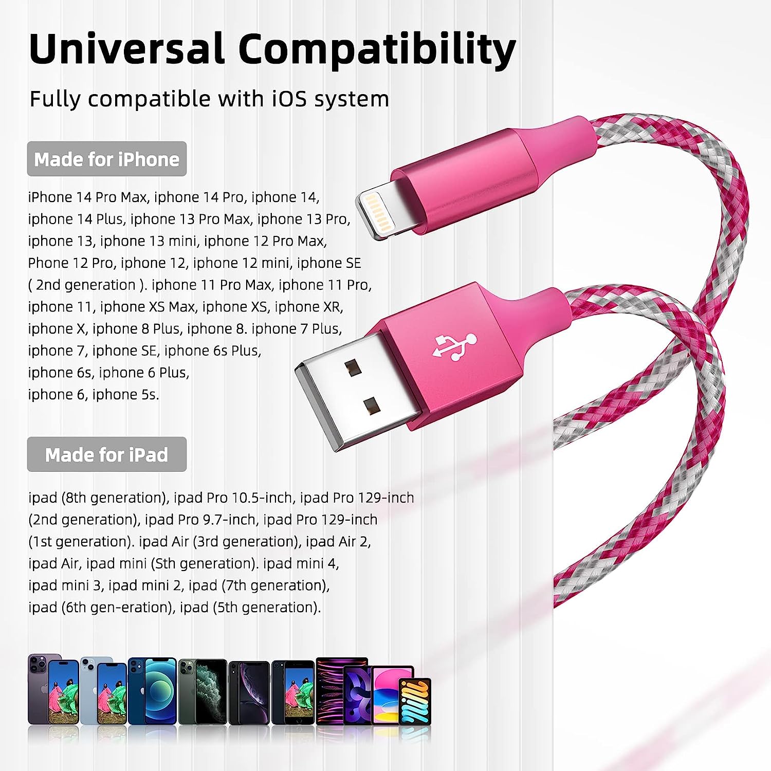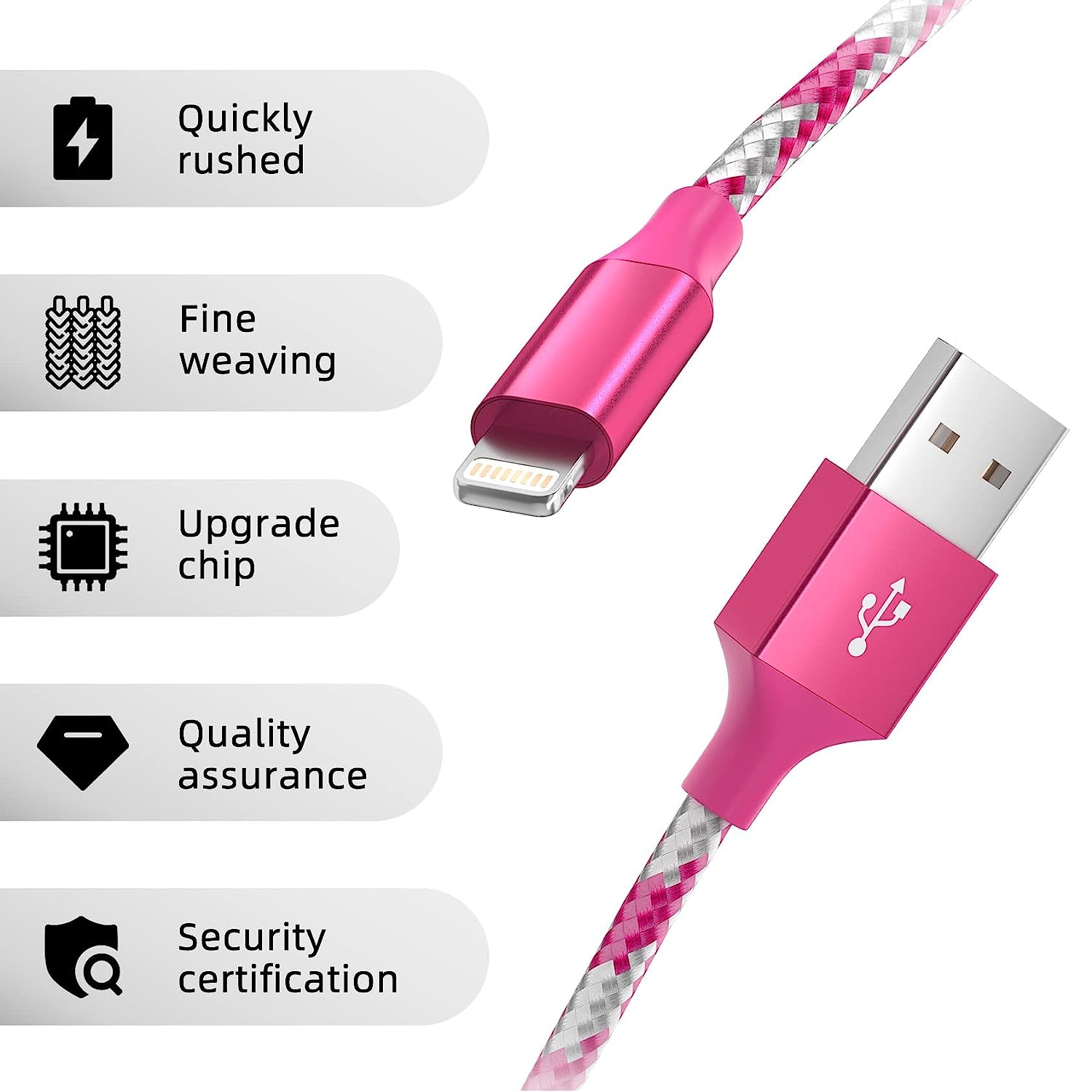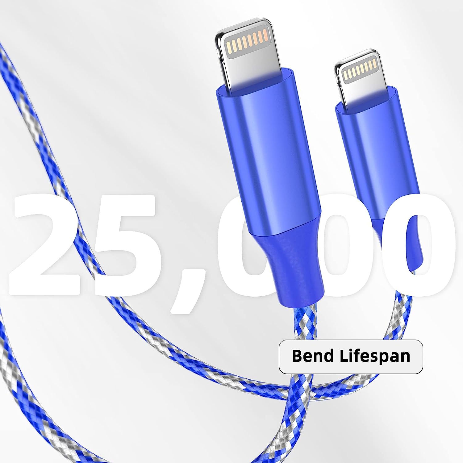 • ⚡iPhone Cable Nylon Braided : The braided nylon insulation and precision layered welded connectors make this cable more durable and stronger than regular iPhone charger cables, while being flexible and tangle-free. Withstands daily connection needs and long-term use.The iPhone charging cable is designed with a reinforced connector that has been tested to over 10,000 bends for extra protection and durability.