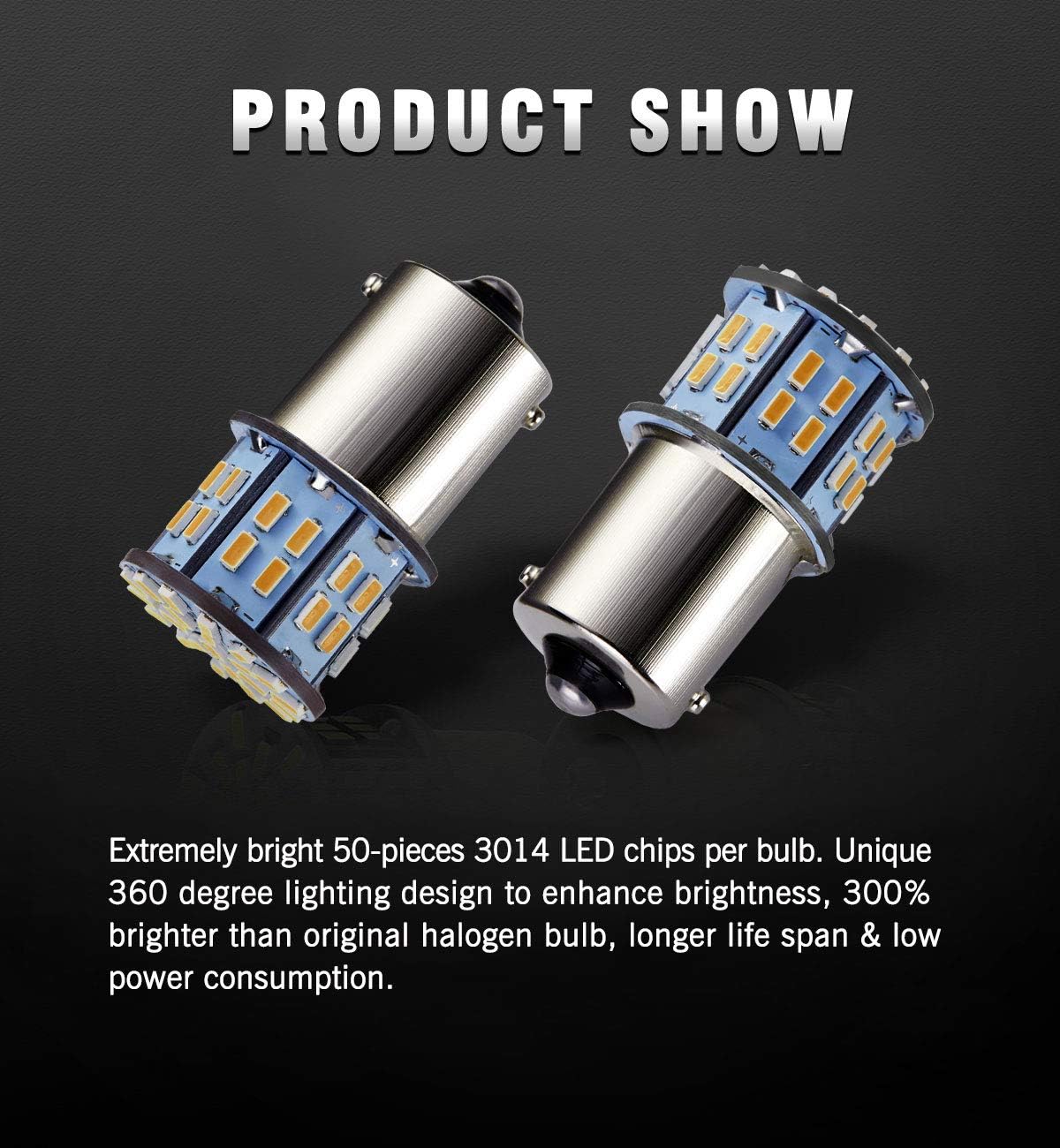 • 【ADVANTAGE】(Set of 20 bulbs)50-pieces extremely bright 3014 LED chips per bulb. Unique 360 degree lighting design to enhance brightness, 300% brighter than original halogen bulb, longer life span & low power consumption.