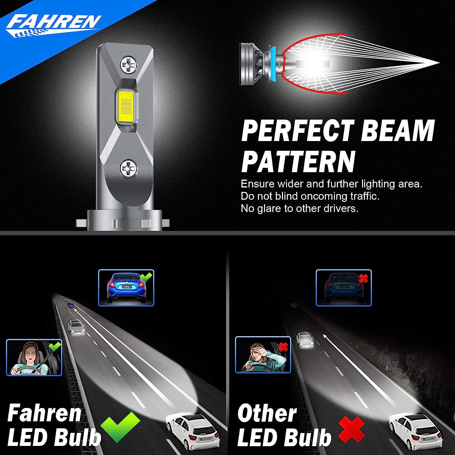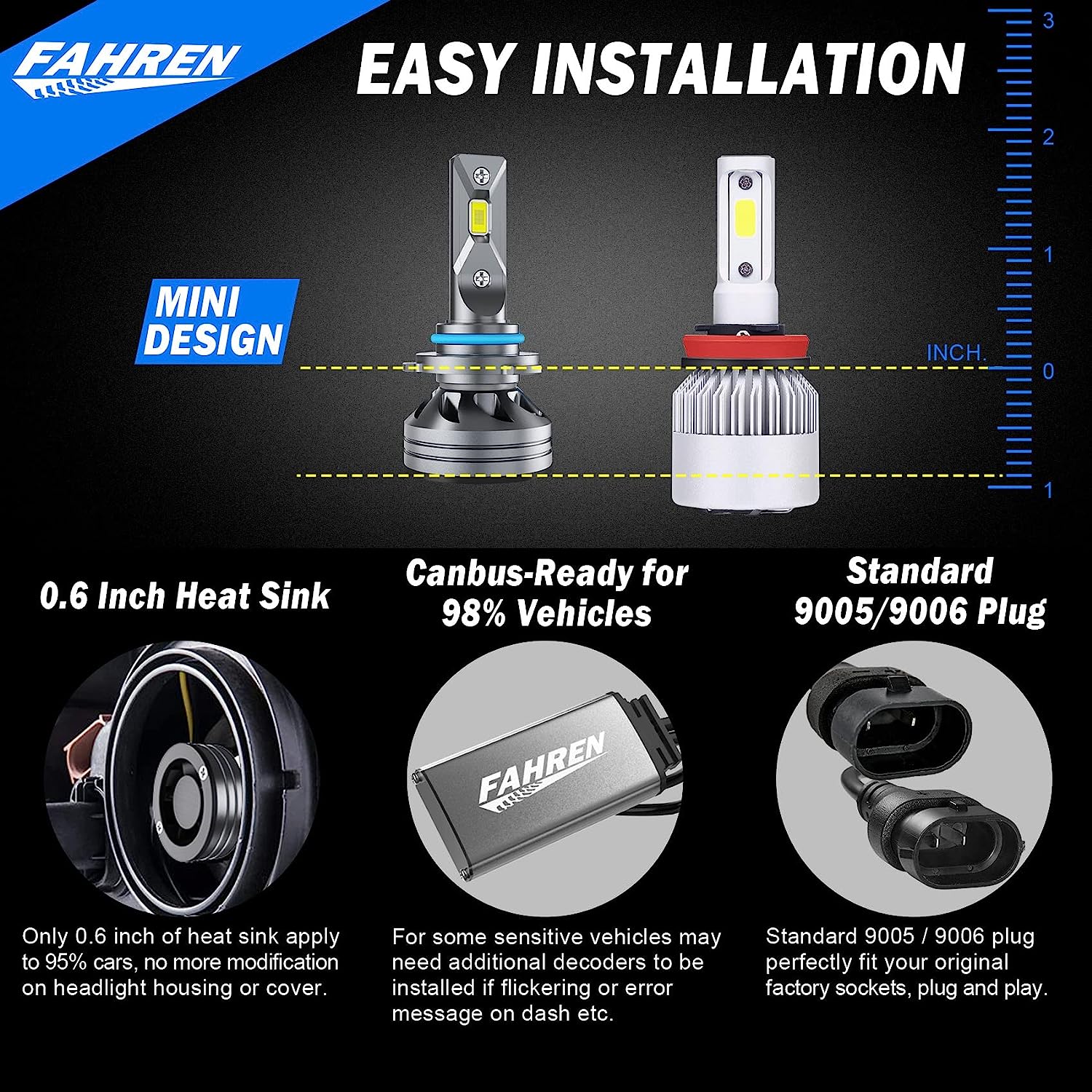 • 【CAN bus-Ready for 98% Vehicles】 - Our bulbs work with 98% of vehicle's computer system without error, while some sensitive models may require additional CAN bus decoder to be installed. FAHREN will help you to get suitable ones if needed.