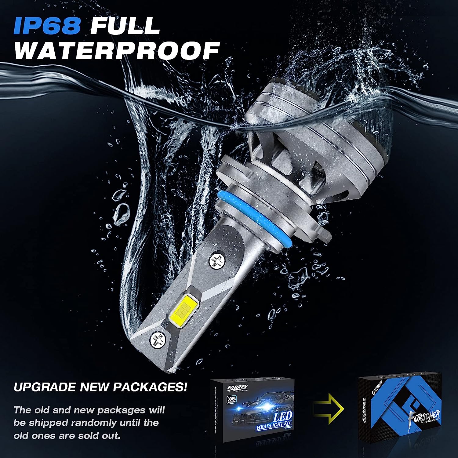FAHREN H11/H8/H9 LED Headlight Bulbs, 60W 18000LM Ultra Bright LED Headlights Conversion Kit 6500K Cool White IP68 Waterproof, Pack of 2