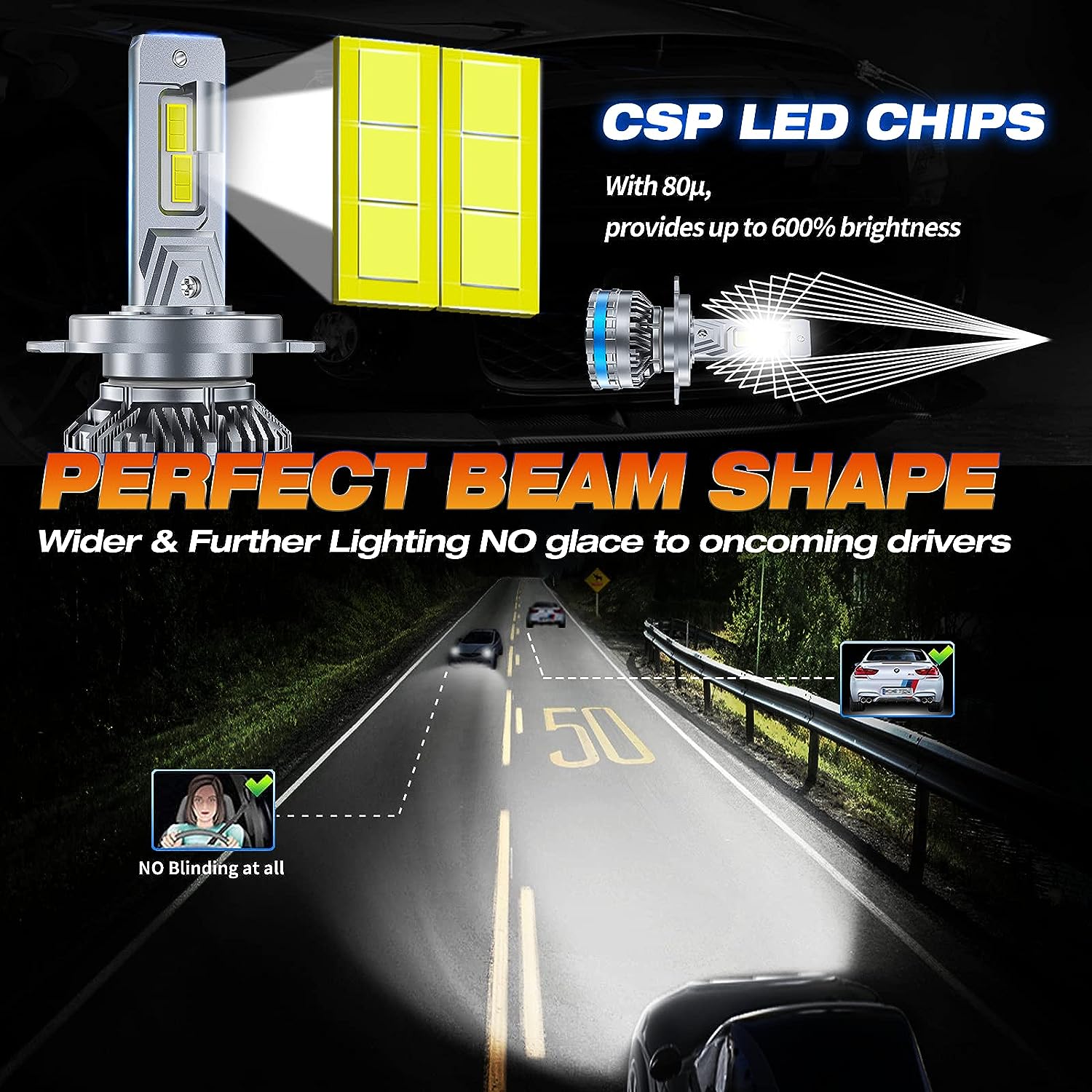 • PERFECT BEAM PATTERN: The ultra-thin design makes the chips of our 9005/HB3 led bulb much closer for a Super-Focused beam, delivering wider angle and farther range light on the road. No glare to oncoming traffic, and no dark spots ensure a safer drive.