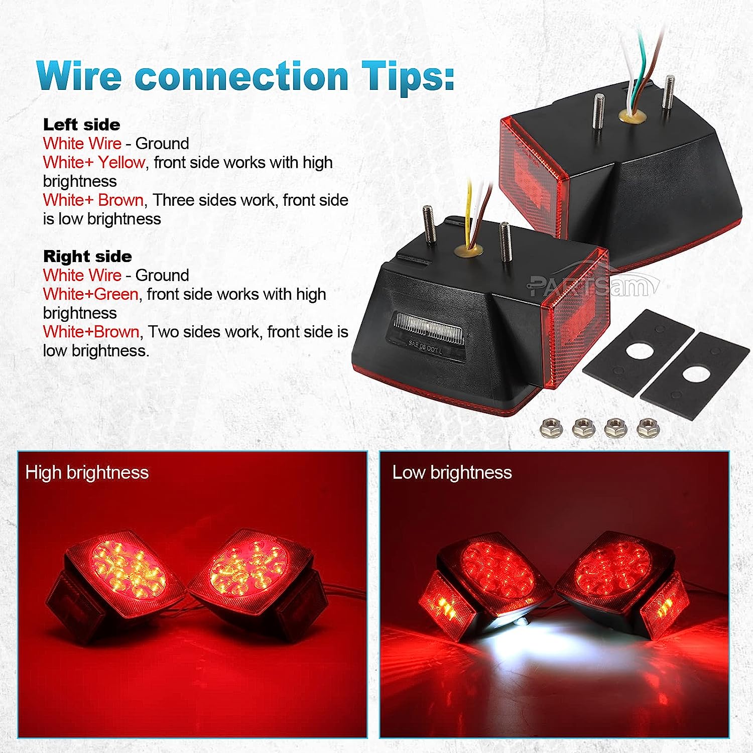 Partsam 12V Submersible Square Led Trailer Light,Red White LED Stop Turn Tail License Brake Running Light Lamp for Trailers Under 80" Boat Trailer Truck Marine Camper RV Snowmobile,IP68,DOT Compliant