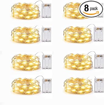 8 Pack Fairy Lights Battery Operated, 7 Feet 20 Led String Lights with Timer, Waterproof Silver Wire Firefly Lights for Home Party Wedding Christmas Decorations, 6 Hours on/18 Hours Off, Warm White