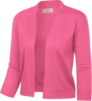 GRACE KARIN Women's 3/4 Sleeve Cardigan Knit Sweaters Cropped Open Front Shrug Bolero___