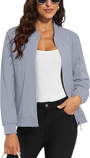 MAGCOMSEN Women's Jacket Lightweight Bomber Jackets 5 Pockets Windbreaker Zip-up Casual Moto Outwear