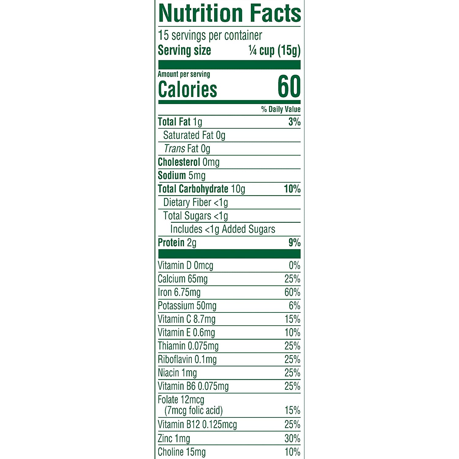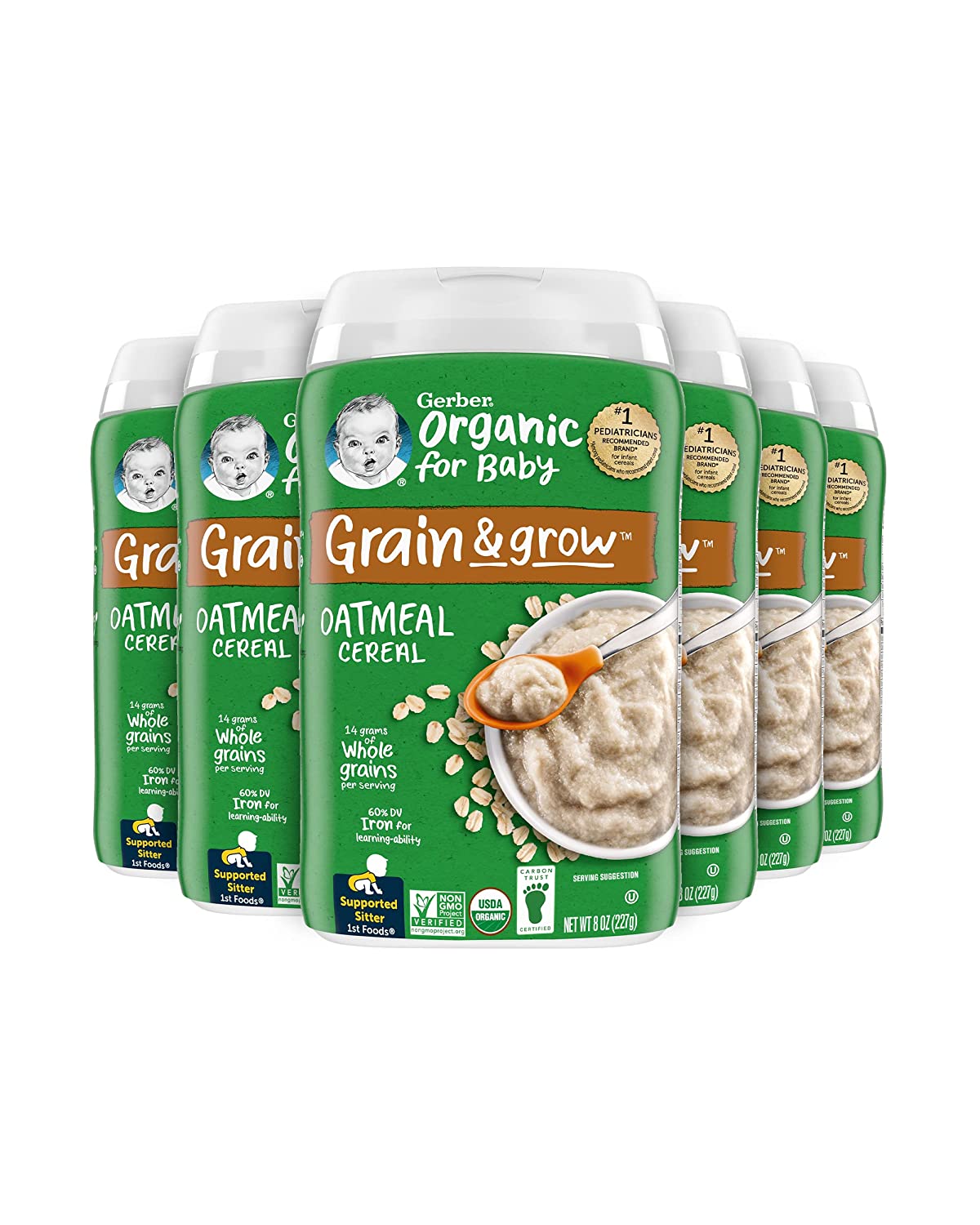 When your baby is ready to start solids, try Gerber Organic Oatmeal cereal. It also has iron to help support learning ability as well as Calcium, Vitamins C and 6 B Vitamins for healthy growth.